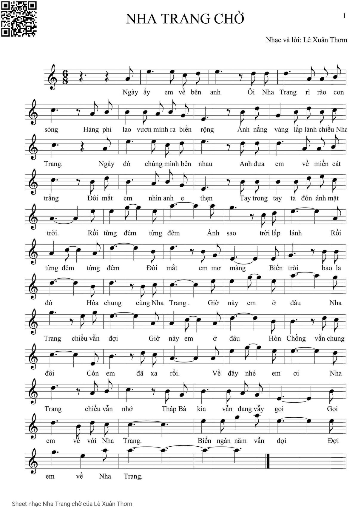 Lê Xuân Thơm Ngày ấy em về bên anh Ôi Nha Trang rì rào con sóng [PDF] [Sheet] [Lời H.A] [Mp4/Midi]