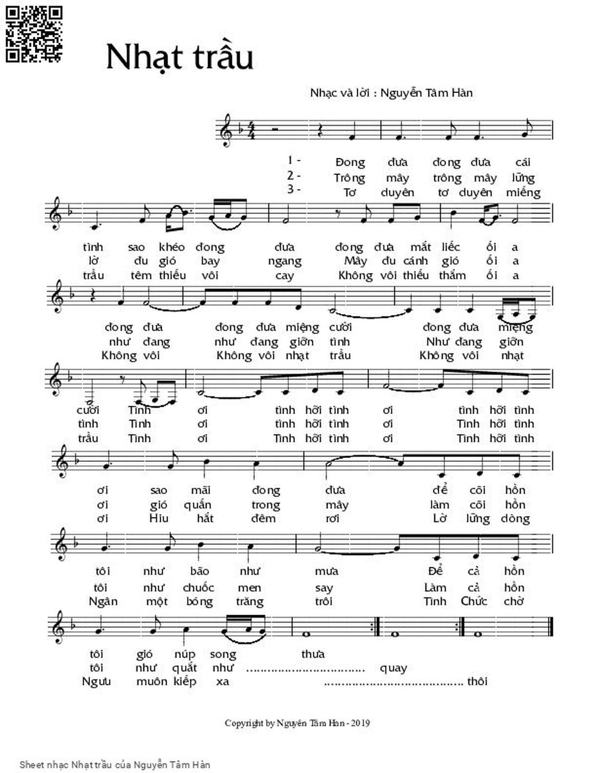 Nguyễn Tâm Hàn Đong đưa đong đưa cái tình sao khéo đong đưa [PDF] [Sheet] [Lời H.A] [Mp4/Midi]