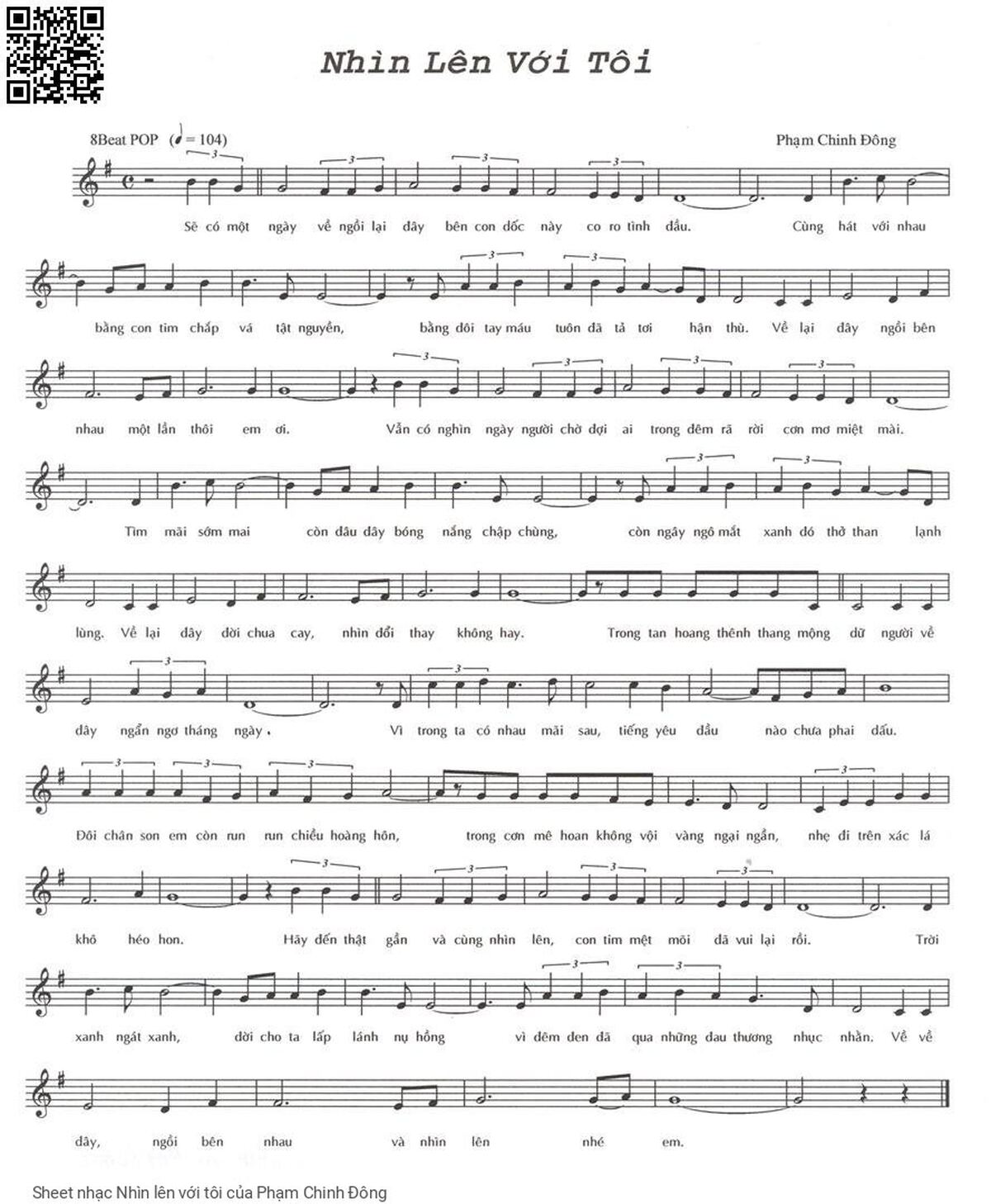 Phần nghe hát Nhìn lên với tôi (Phạm Chinh Đông) được nhúng từ Youtube, Musescore hoặc link ngoài và chịu sự kiểm soát bản quyền của bên thứ ba đó, vì vậy có thể bị xóa hoặc chèn quảng cáo bất kỳ lúc nào. Nếu bạn không nghe - xem được ca sĩ hát tức là đã bị Youtube hoặc Musescore kiểm soát.