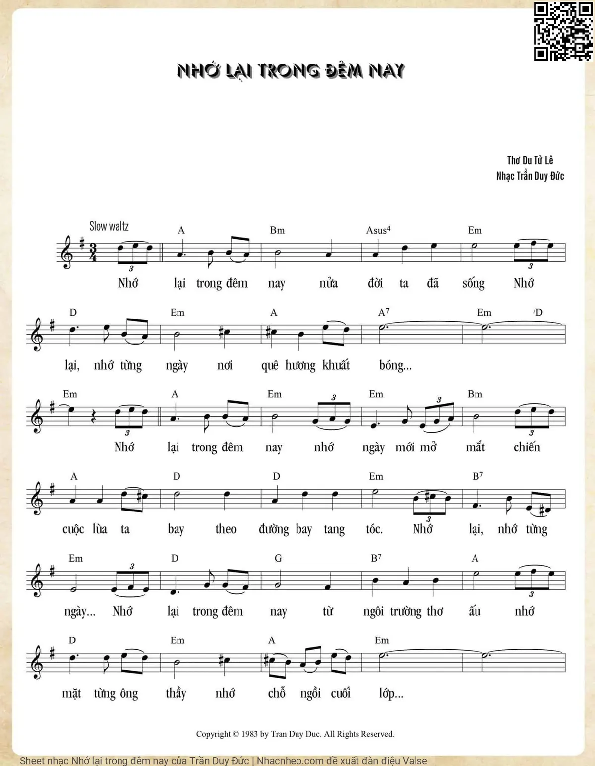 Các sheet PDF cùng tên Nhớ lại trong đêm nay: