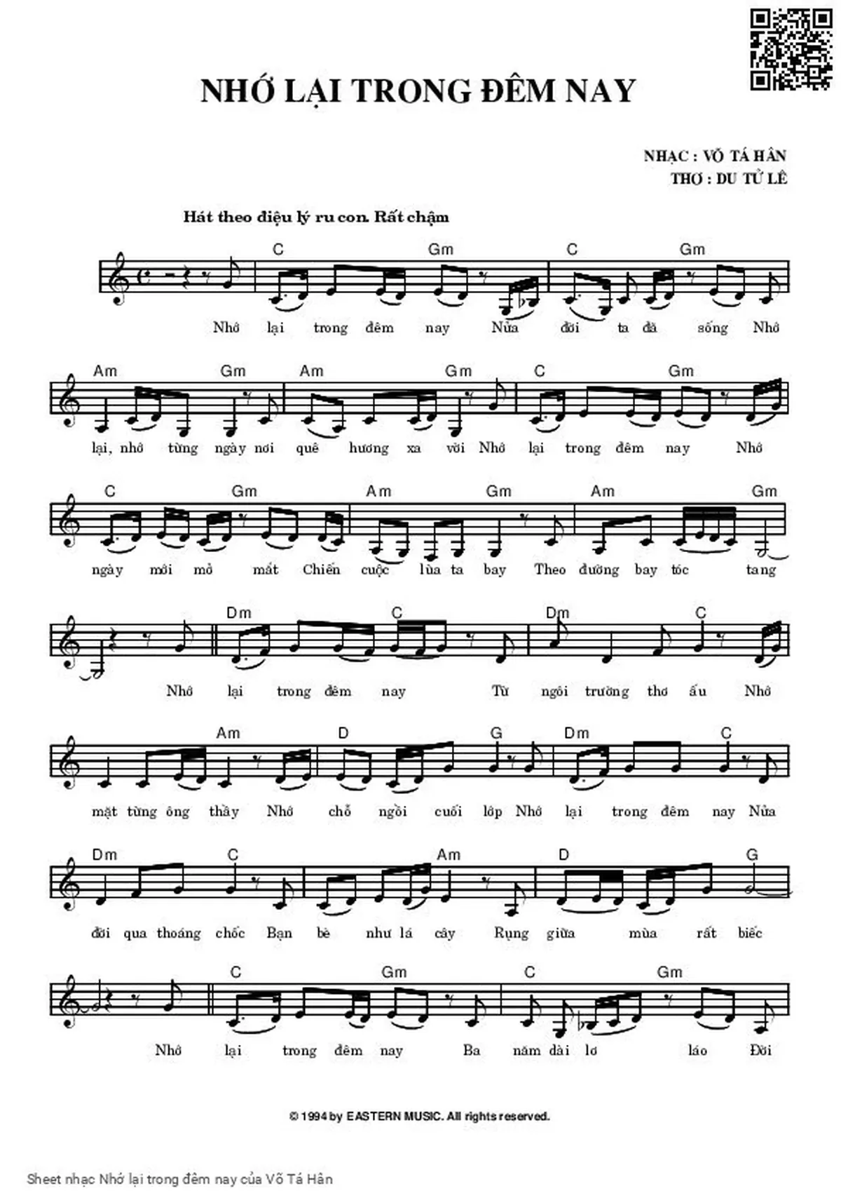 Võ Tá Hân Nhớ lại trong đêm nay Nửa đời ta đã sống [PDF] [Sheet] [Lời H.A] [Mp4/Midi]