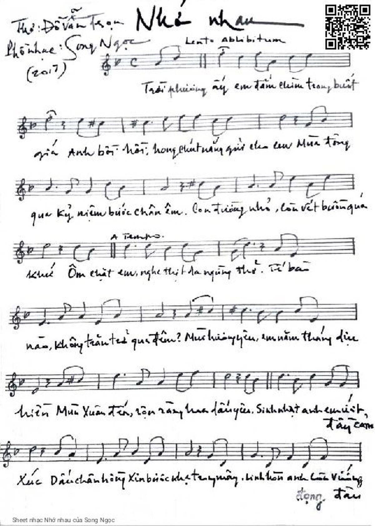 Phần nghe hát Nhớ nhau (Song Ngọc) được nhúng từ Youtube, Musescore hoặc link ngoài và chịu sự kiểm soát bản quyền của bên thứ ba đó, vì vậy có thể bị xóa hoặc chèn quảng cáo bất kỳ lúc nào. Nếu bạn không nghe - xem được ca sĩ hát tức là đã bị Youtube hoặc Musescore kiểm soát.