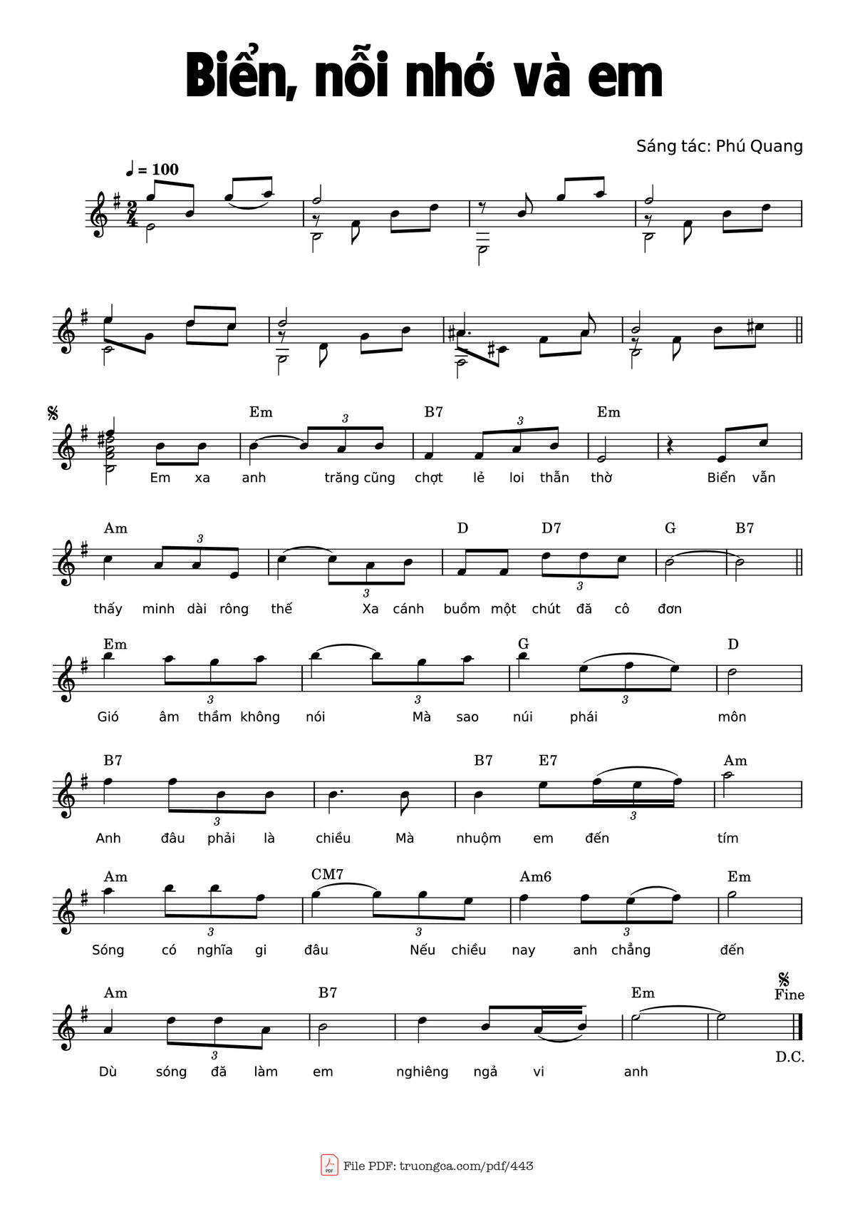 Các sheet PDF cùng tên Biển, nỗi nhớ và em: