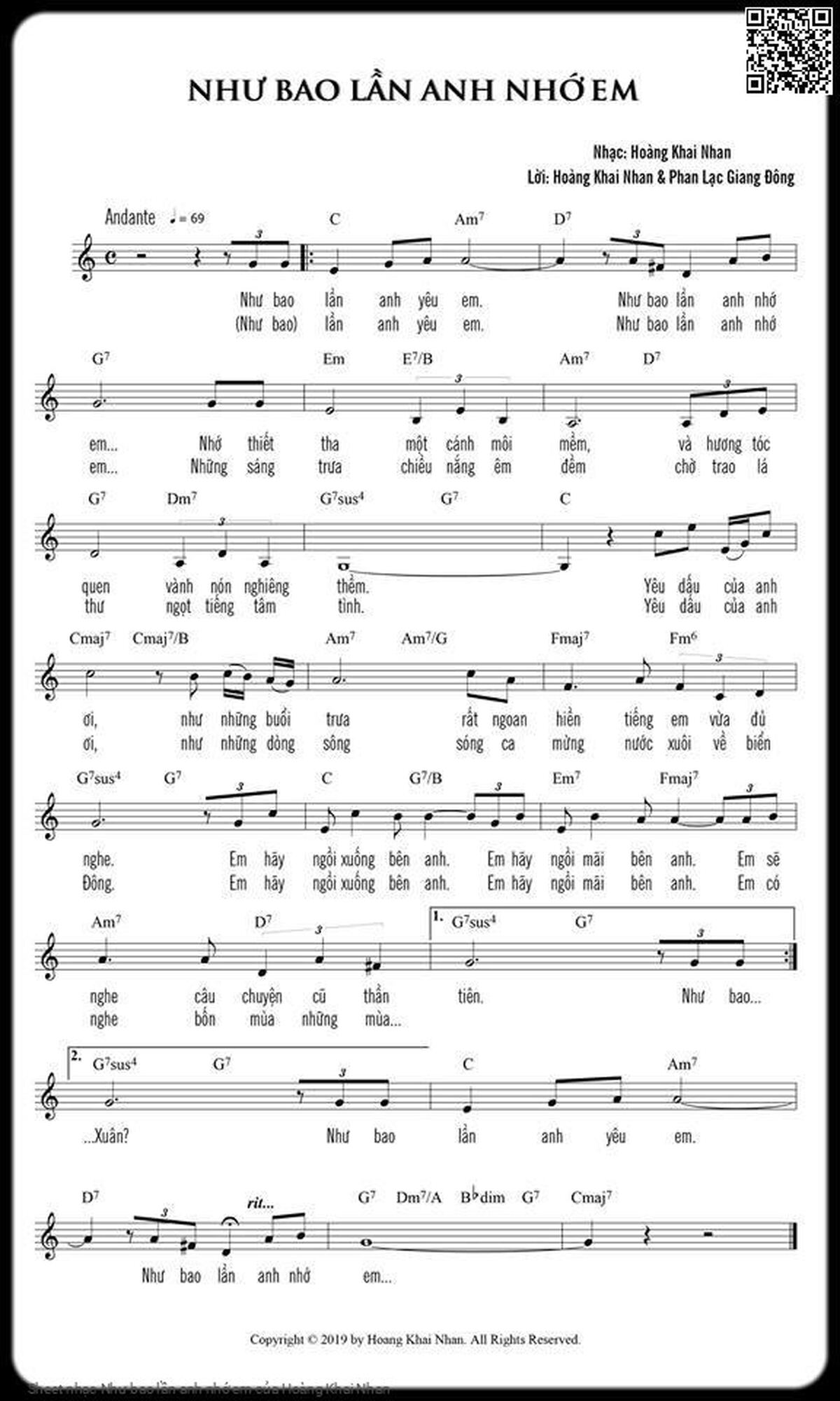 Hoàng Khai Nhan Như bao lần anh yêu em Như bao lần anh nhớ em [PDF] [Sheet] [Lời H.A] [Mp4/Midi]