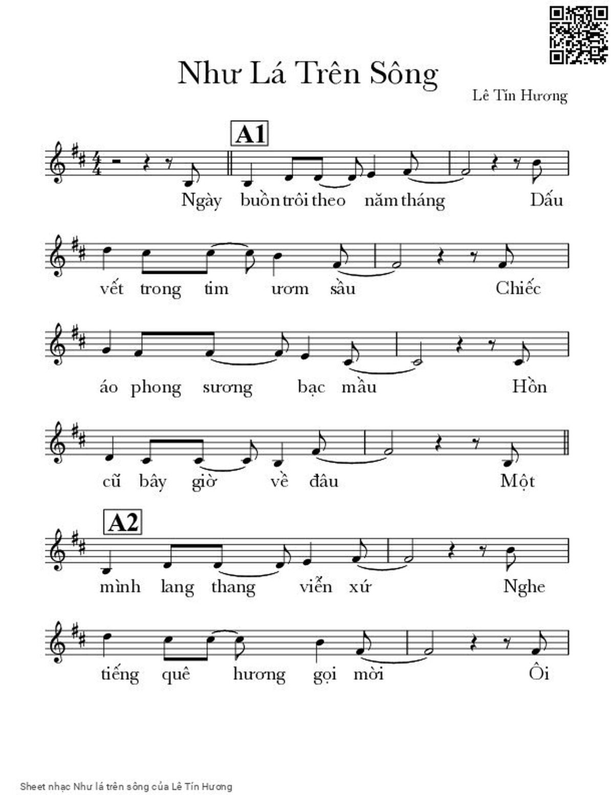 Lê Tín Hương Ngày buồn trôi theo năm tháng Dấu vết trong tim ươm sầu [PDF] [Sheet] [Lời H.A] [Mp4/Midi]