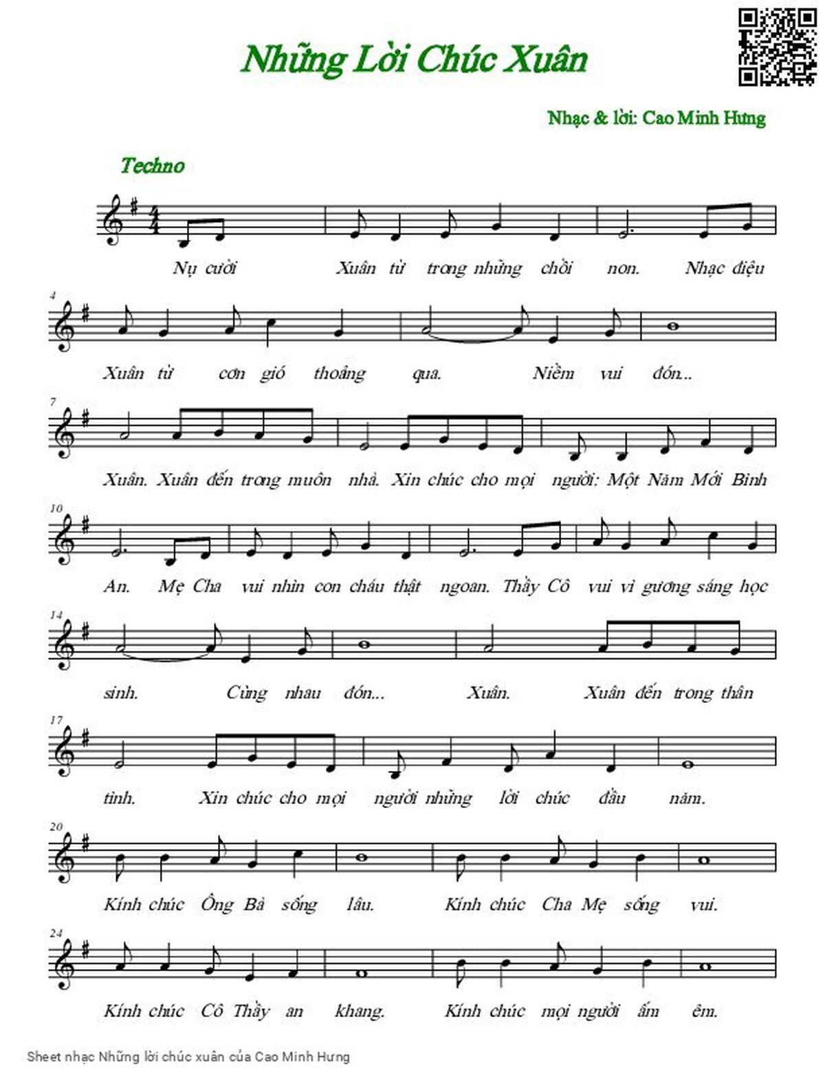 Cao Minh Hưng Nụ cười xuân từ trong những chồi non [PDF] [Sheet] [Lời H.A] [Mp4/Midi]