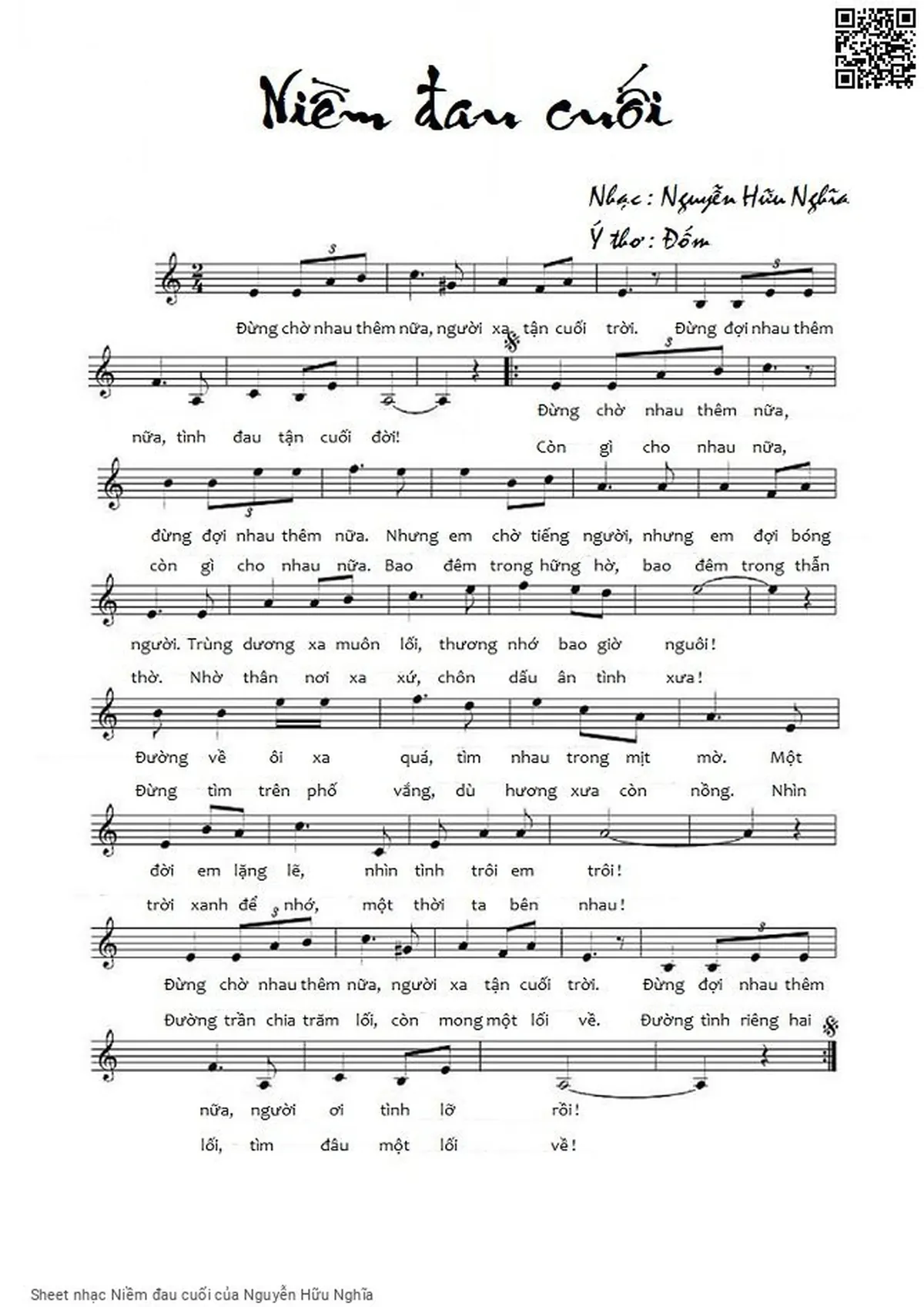 Nguyễn Hữu Nghĩa Đừng chờ nhau thêm nữa người xa tận cuối trời [PDF] [Sheet] [Lời H.A] [Mp4/Midi]