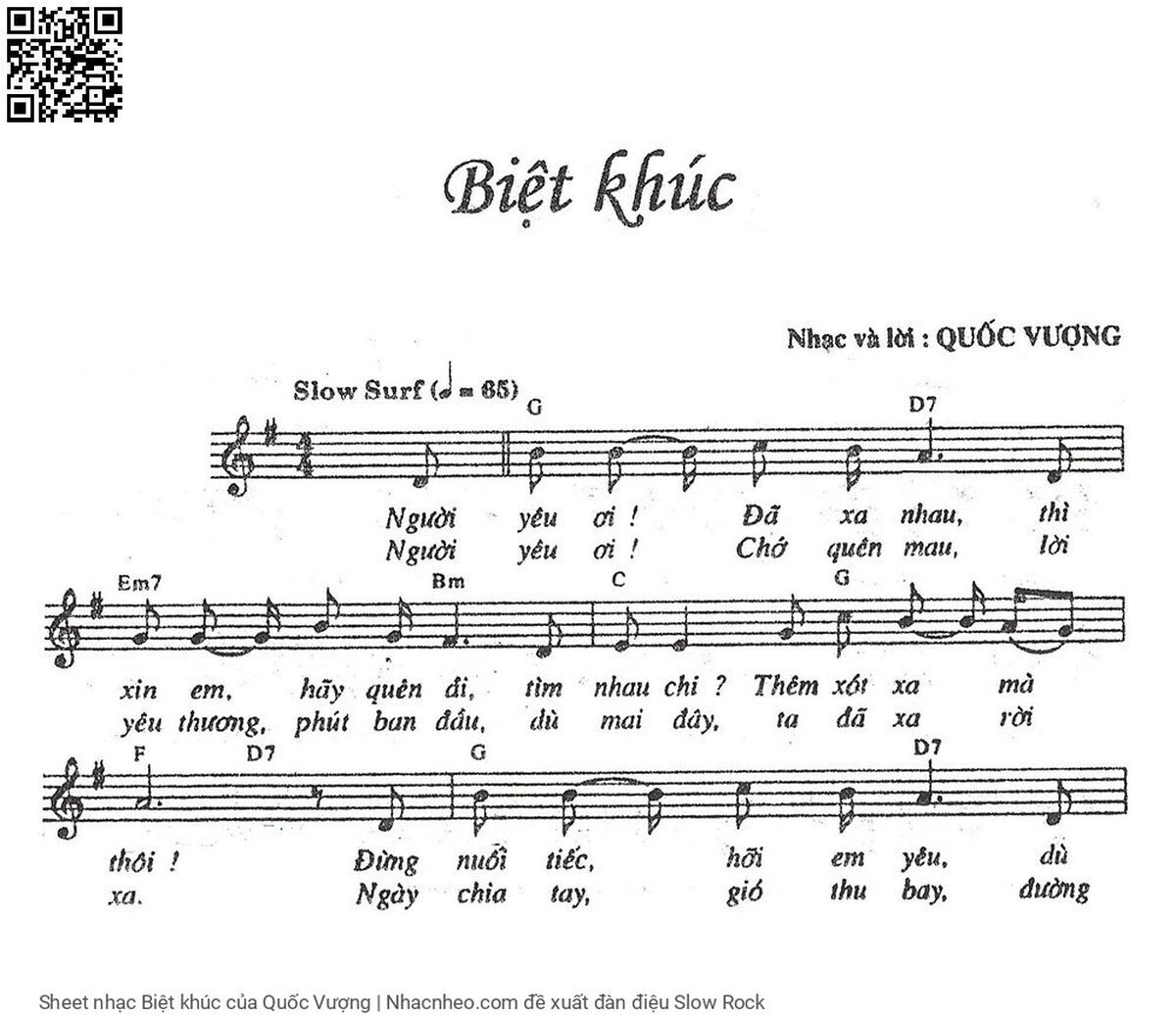 Phần nghe hát Biệt khúc (Quốc Vượng) được nhúng từ Youtube, Musescore hoặc link ngoài và chịu sự kiểm soát bản quyền của bên thứ ba đó, vì vậy có thể bị xóa hoặc chèn quảng cáo bất kỳ lúc nào. Nếu bạn không nghe - xem được ca sĩ hát tức là đã bị Youtube hoặc Musescore kiểm soát.