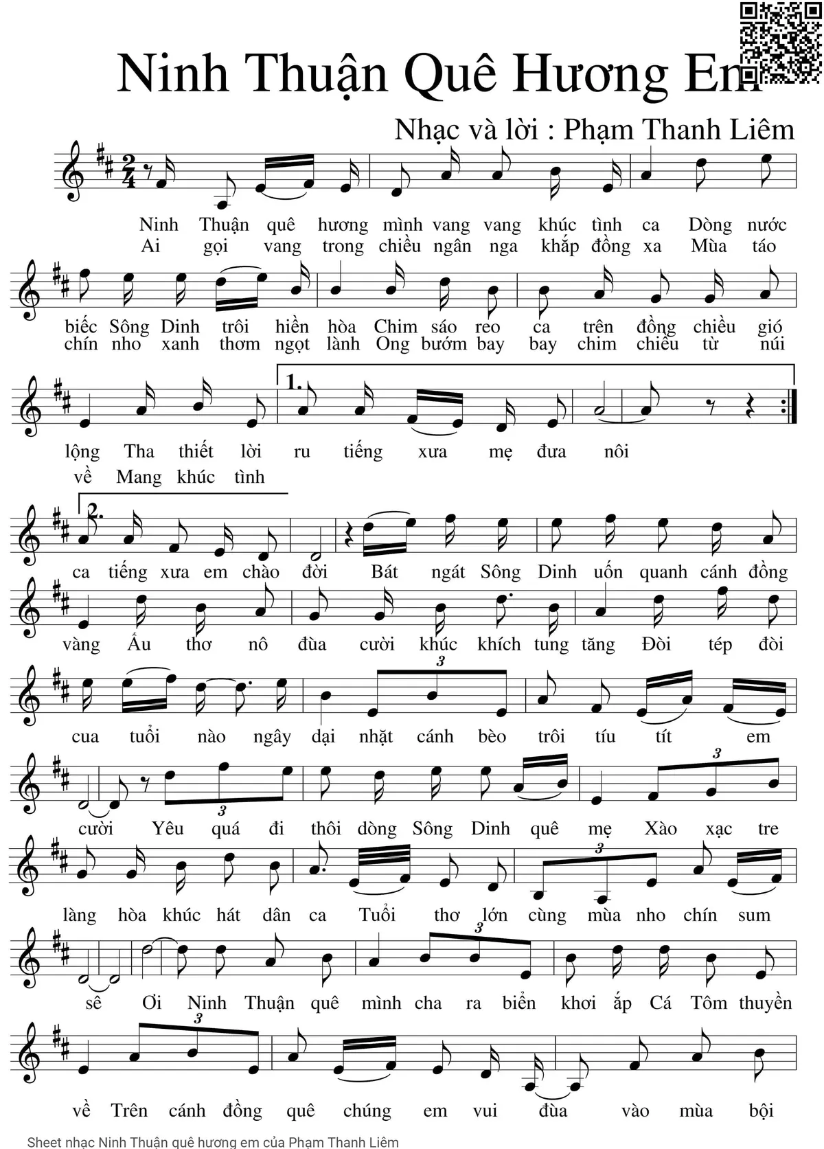 Phạm Thanh Liêm Ninh Thuận quê hương mình vang vang khúc tình ca [PDF] [Sheet] [Lời H.A] [Mp4/Midi]