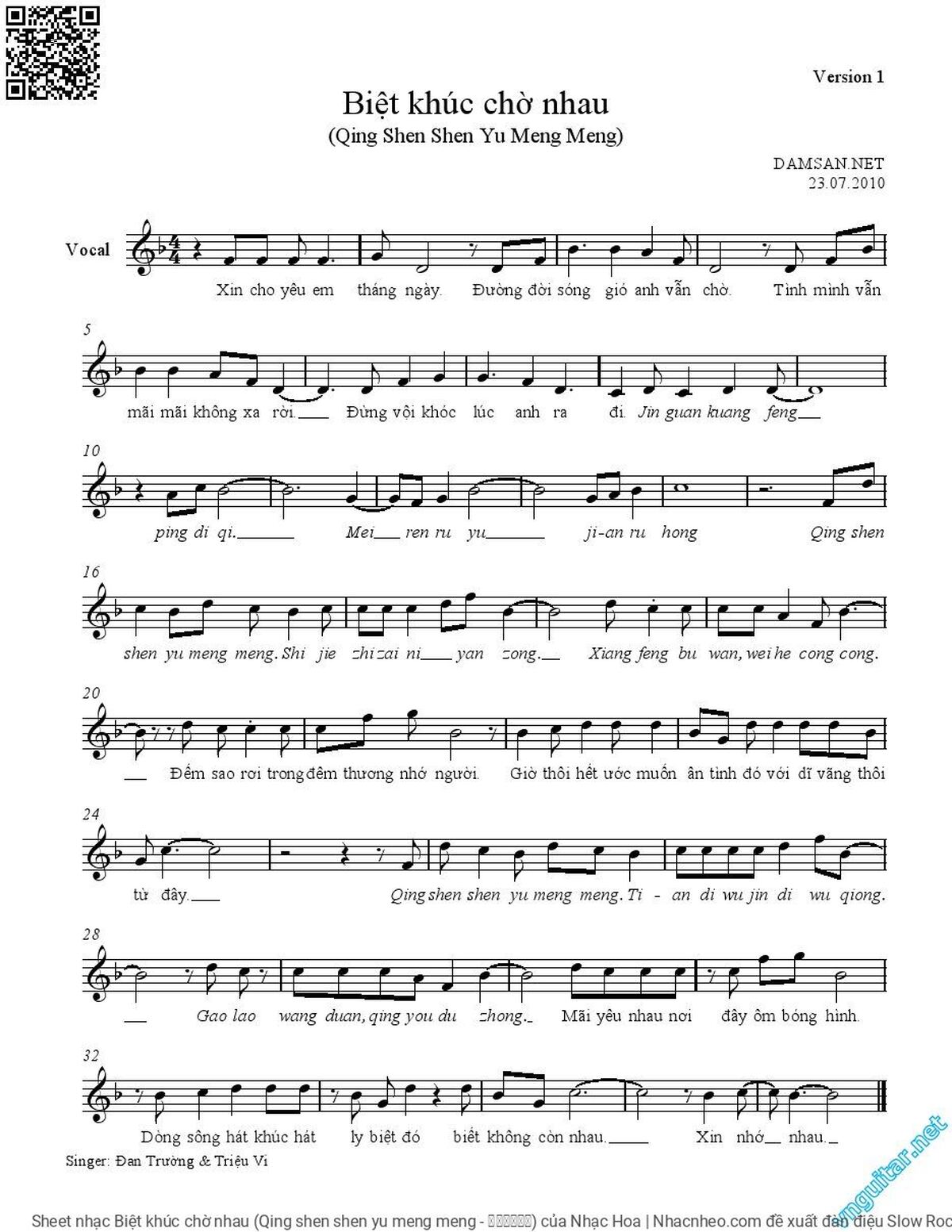 Các sheet PDF tương tự Biệt khúc chờ nhau (Qing shen shen yu meng meng - 情深深雨濛濛):