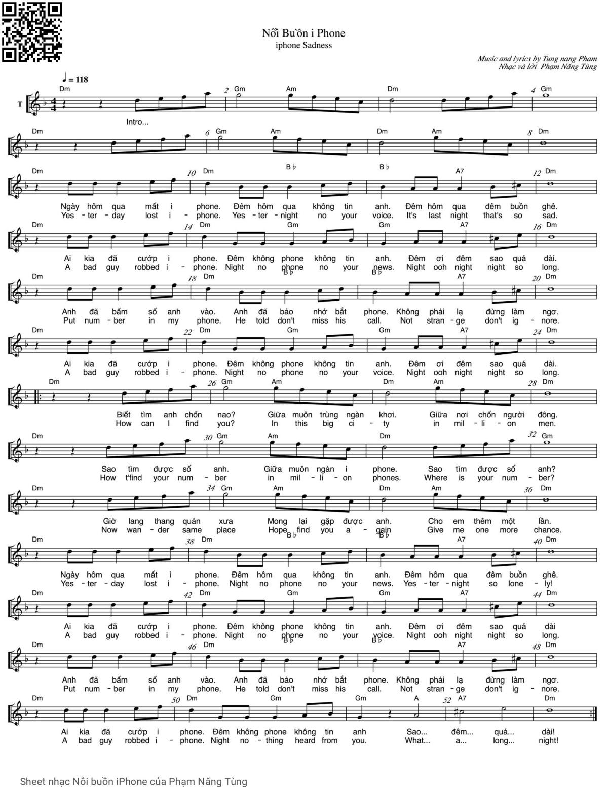Phạm Năng Tùng Ngày hôm qua mất iPhone Đêm hôm qua không tin anh [PDF] [Sheet] [Lời H.A] [Mp4/Midi]