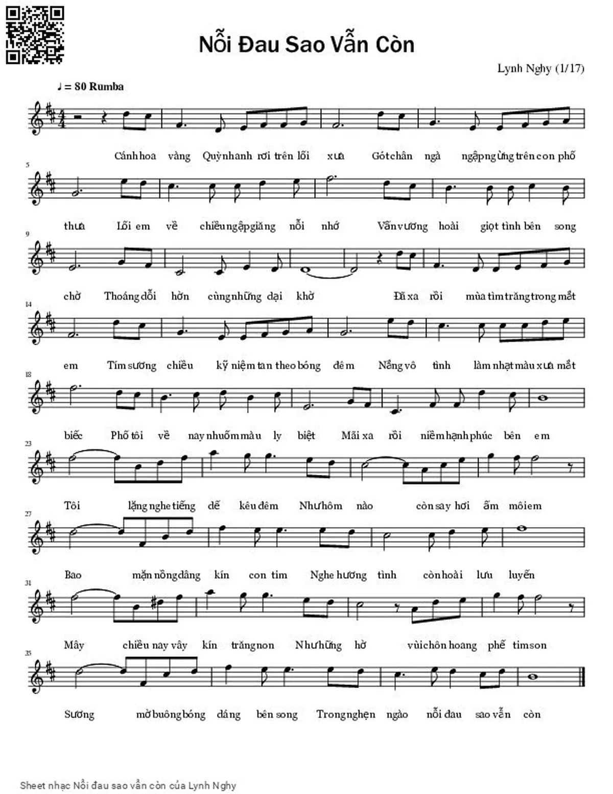 Lynh Nghy Cánh hoa vàng quỳnh anh rơi trên lối xưa [PDF] [Sheet] [Lời H.A] [Mp4/Midi]