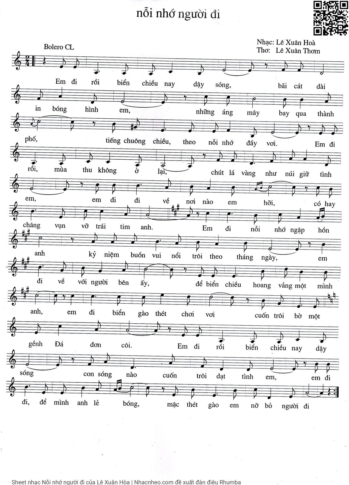Lê Xuân Hòa Em đi rồi biển chiều nay dậy sóng [PDF] [Sheet] [Lời H.A] [Mp4/Midi]