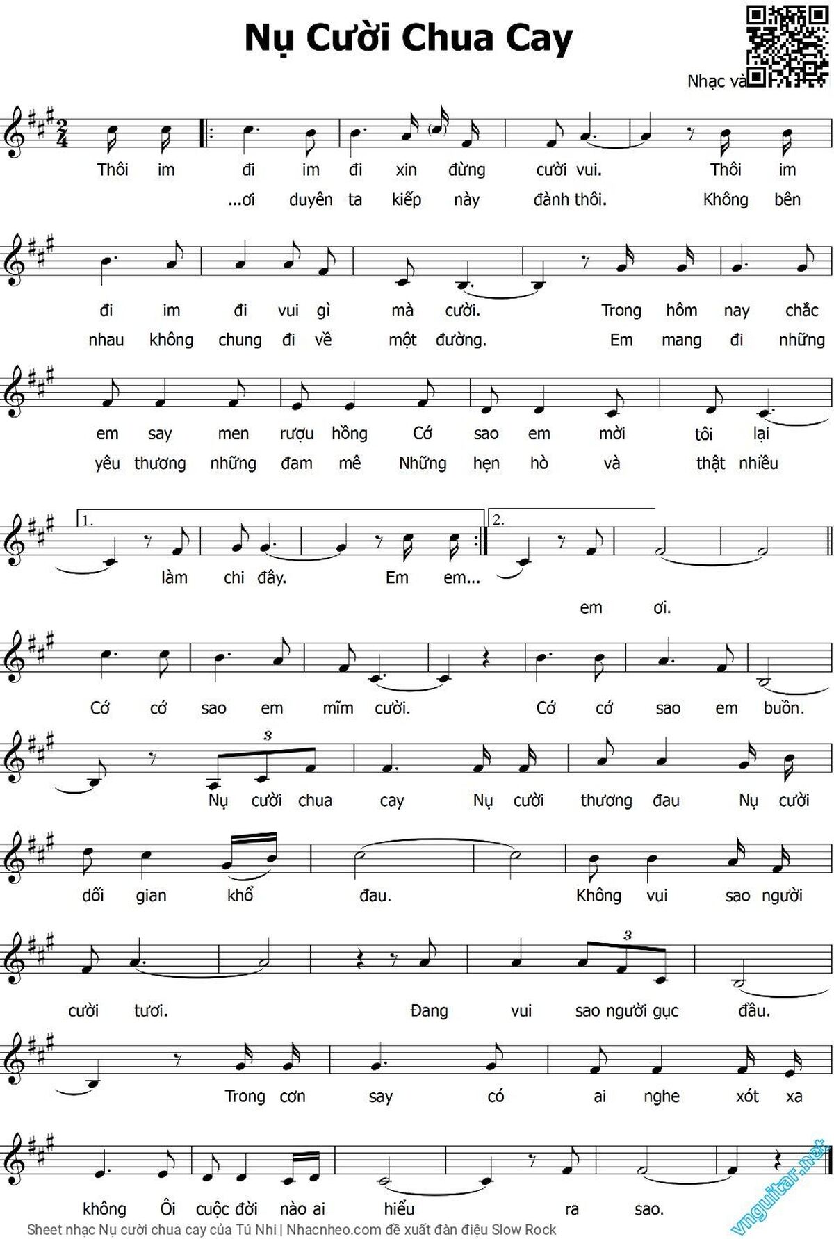 Phần nghe hát Nụ cười chua cay (Tú Nhi) được nhúng từ Youtube, Musescore hoặc link ngoài và chịu sự kiểm soát bản quyền của bên thứ ba đó, vì vậy có thể bị xóa hoặc chèn quảng cáo bất kỳ lúc nào. Nếu bạn không nghe - xem được ca sĩ hát tức là đã bị Youtube hoặc Musescore kiểm soát.