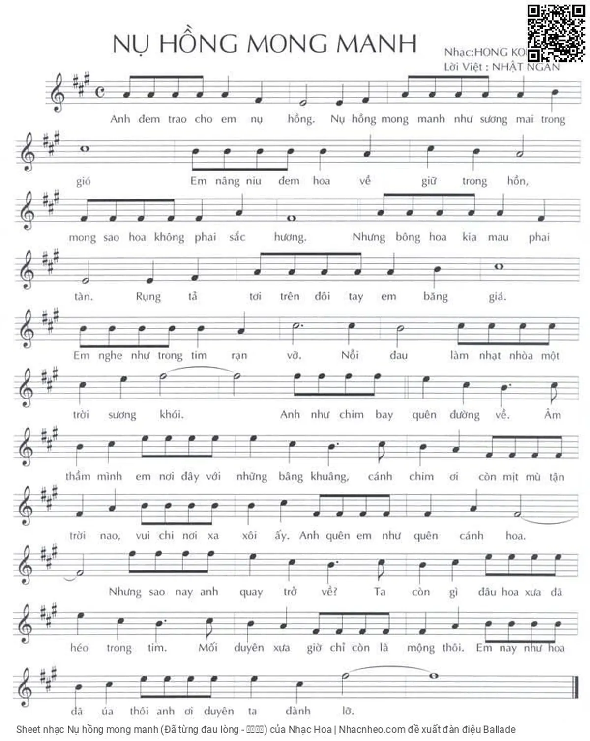 Nhạc Hoa Anh đem trao cho em nụ hồng Nụ hồng mong manh như sương mai trong gió [PDF] [Sheet] [Lời H.A] [Mp4/Midi]
