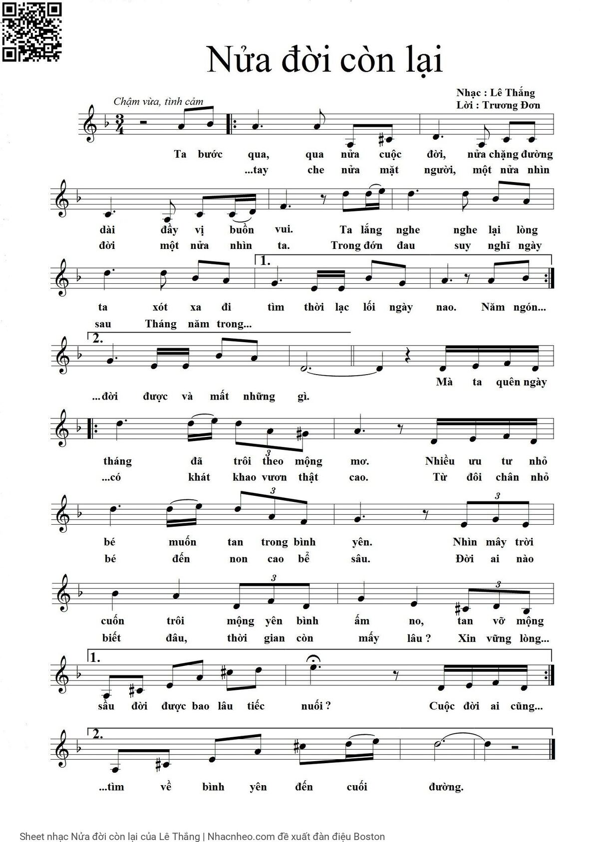 Lê Thắng Ta bước qua qua nửa cuộc đời [PDF] [Sheet] [Lời H.A] [Mp4/Midi]