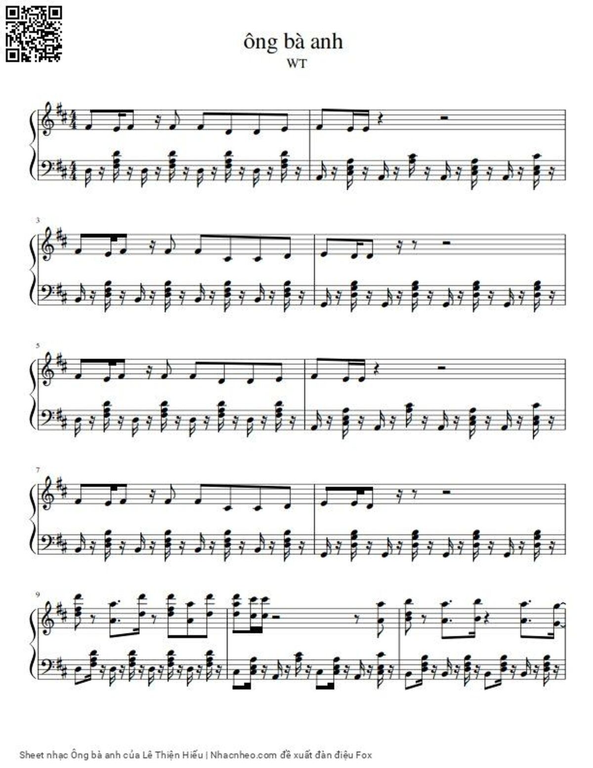 Chọn nút dấu + để tăng tông lên nửa cung, nút dấu - để giảm tông xuống nửa cung. Rê chuột vào hợp âm để xem các thế bấm hợp âm của bài hát Ông bà anh.