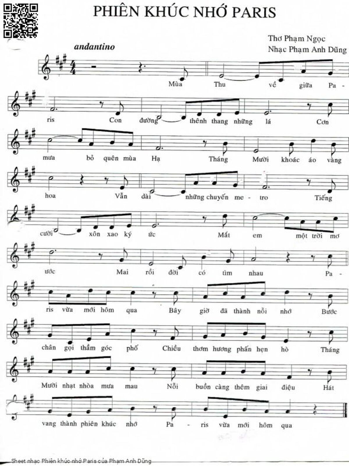 Phạm Anh Dũng Mùa thu về giữa Paris Con đường thênh thang những lá [PDF] [Sheet] [Lời H.A] [Mp4/Midi]