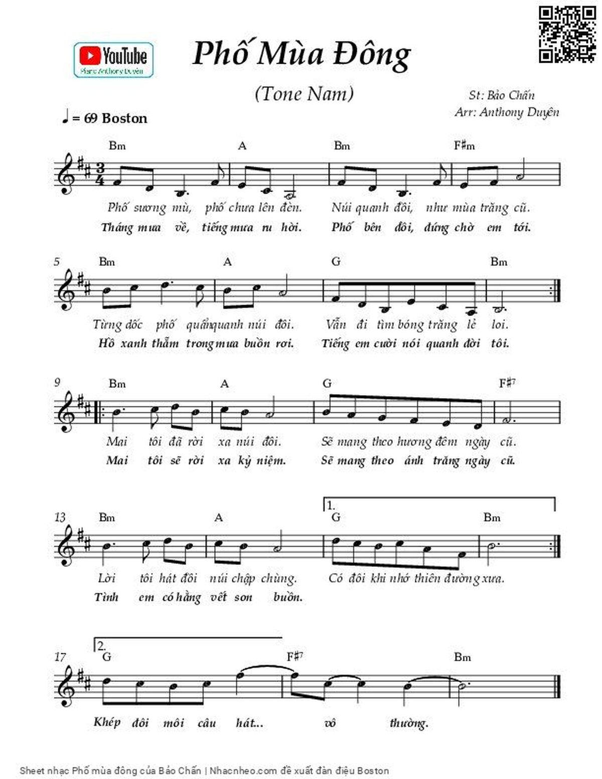 Bảo Chấn Phố sương mù phố chưa lên đèn Núi quanh đồi như mùa trăng cũ [PDF] [Sheet] [Lời H.A] [Mp4/Midi] [Lời bình - giai thoại]
