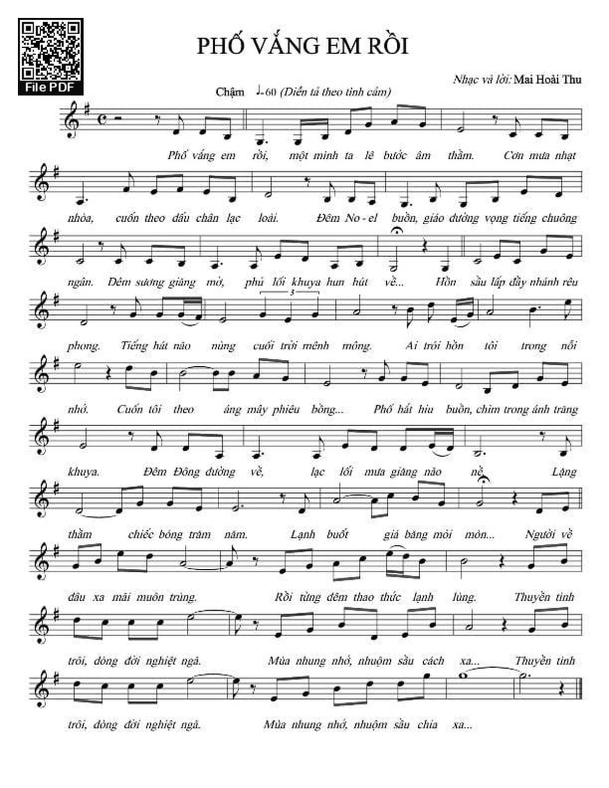 Mai Hoài Thu Phố vắng em rồi một mình ta lê bước âm thầm [PDF] [Sheet] [Lời H.A] [Mp4/Midi]