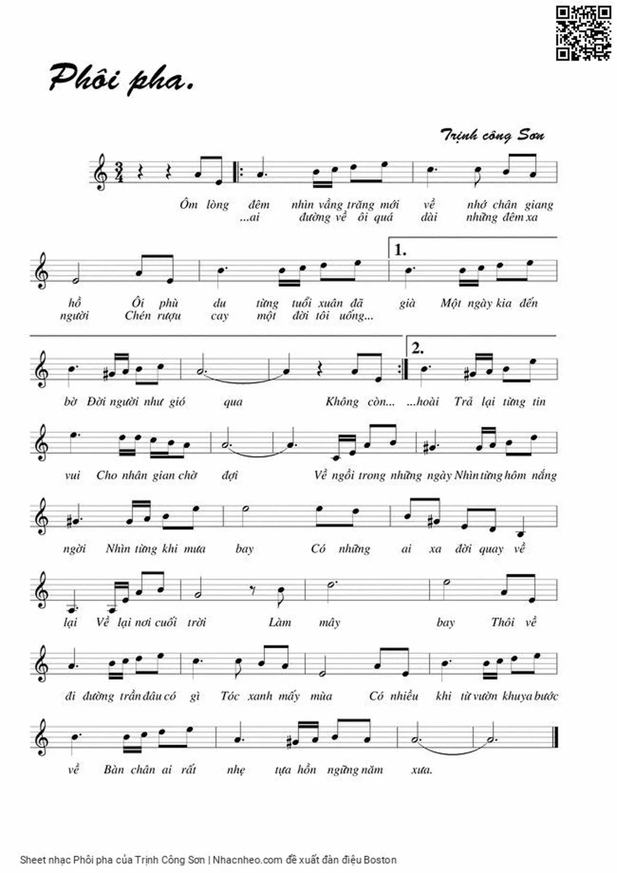 Phần nghe hát Phôi pha (Trịnh Công Sơn) được nhúng từ Youtube, Musescore hoặc link ngoài và chịu sự kiểm soát bản quyền của bên thứ ba đó, vì vậy có thể bị xóa hoặc chèn quảng cáo bất kỳ lúc nào. Nếu bạn không nghe - xem được ca sĩ hát tức là đã bị Youtube hoặc Musescore kiểm soát.
