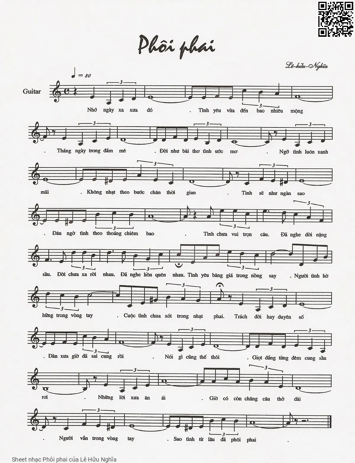 Phần nghe hát Phôi phai (Lê Hữu Nghĩa) được nhúng từ Youtube, Musescore hoặc link ngoài và chịu sự kiểm soát bản quyền của bên thứ ba đó, vì vậy có thể bị xóa hoặc chèn quảng cáo bất kỳ lúc nào. Nếu bạn không nghe - xem được ca sĩ hát tức là đã bị Youtube hoặc Musescore kiểm soát.