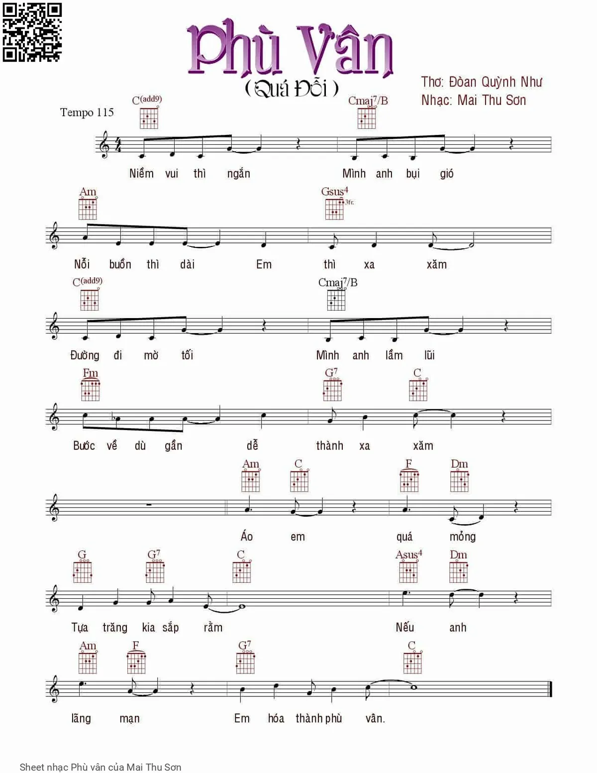 Phần nghe hát Phù vân (Mai Thu Sơn) được nhúng từ Youtube, Musescore hoặc link ngoài và chịu sự kiểm soát bản quyền của bên thứ ba đó, vì vậy có thể bị xóa hoặc chèn quảng cáo bất kỳ lúc nào. Nếu bạn không nghe - xem được ca sĩ hát tức là đã bị Youtube hoặc Musescore kiểm soát.