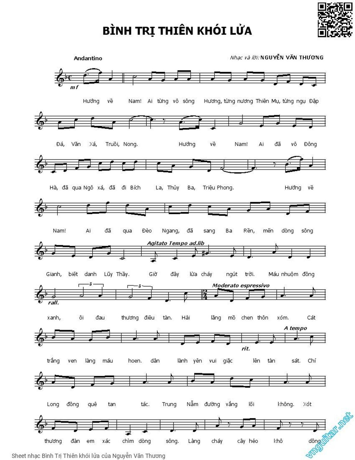 Nguyễn Văn Thương Hướng về nam Ai từng vô sông Hương [PDF] [Sheet] [Lời H.A] [Mp4/Midi]