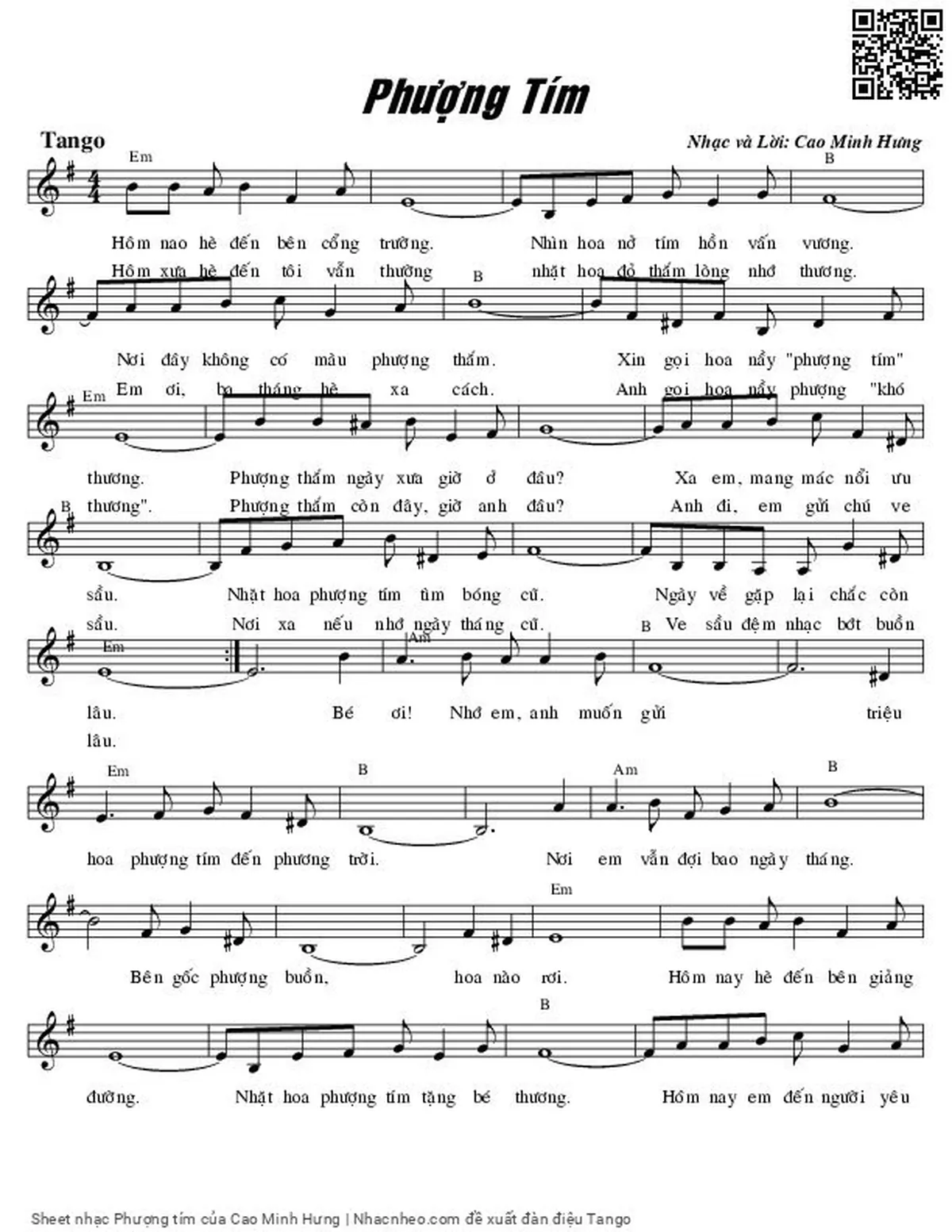 Cao Minh Hưng Hôm nao hè đến bên cổng trường Nhìn hoa nở tím hồn vấn vương [PDF] [Sheet] [Lời H.A] [Mp4/Midi]