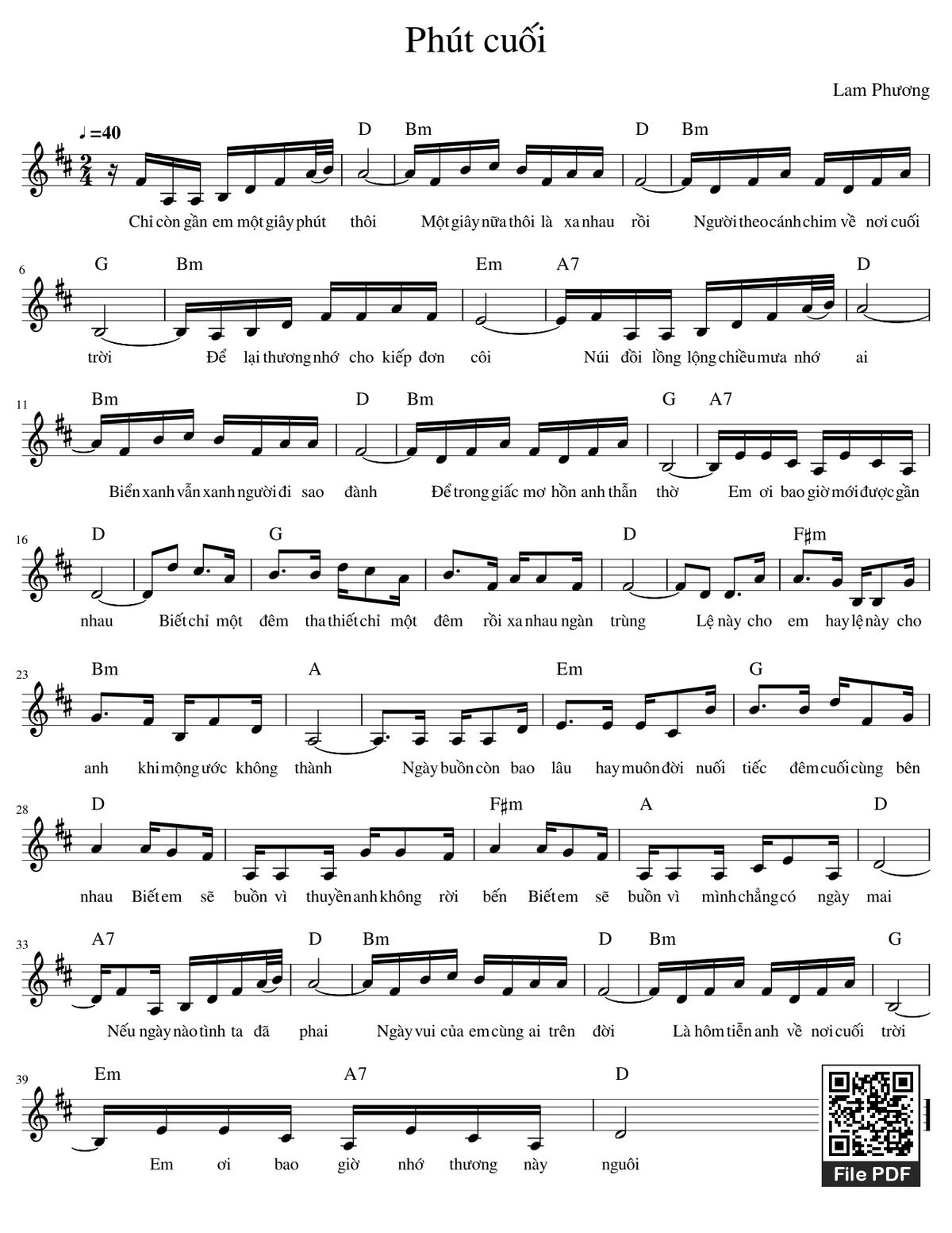 Lam Phương Chỉ còn gần em một giây phút thôi Một giây nữa thôi là xa nhau rồi [PDF] [Sheet] [Lời H.A] [Mp4/Midi]
