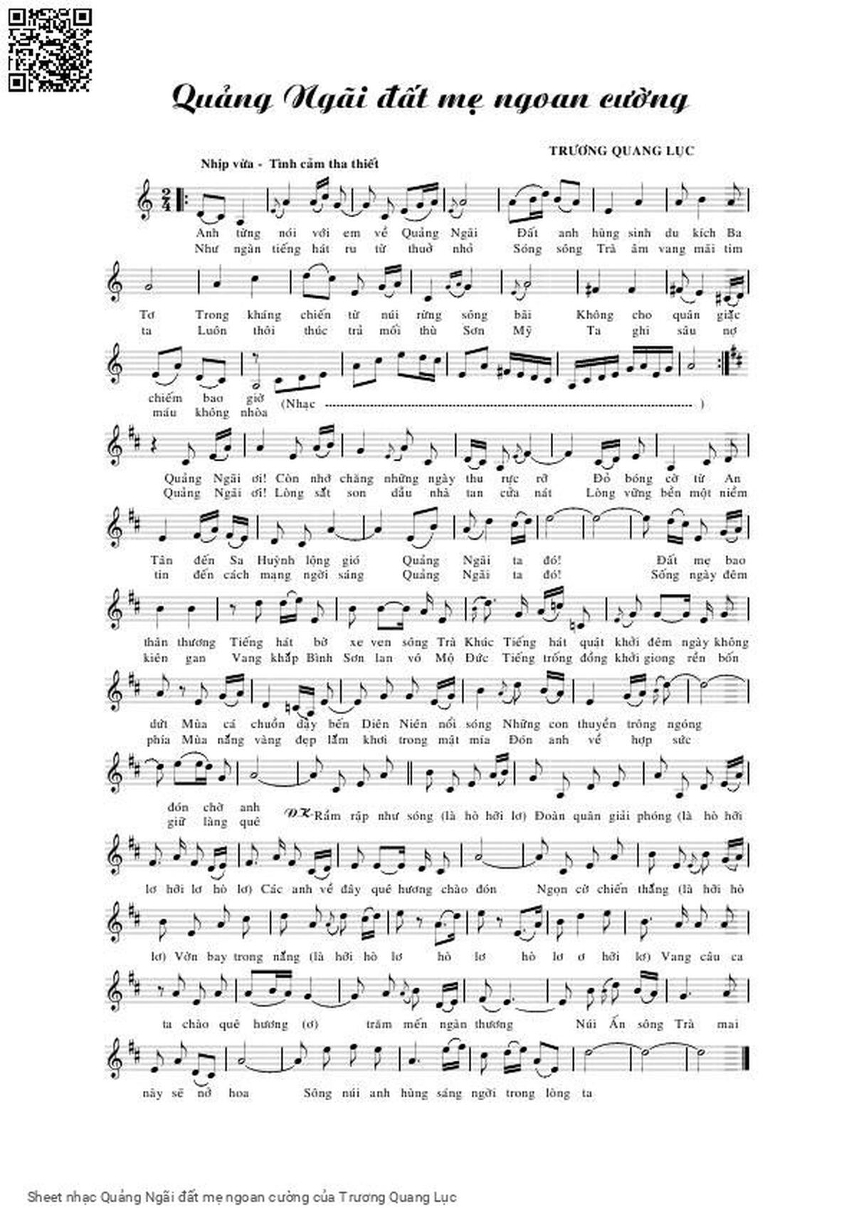 Trương Quang Lục Anh từng nói với em về Quảng Ngãi Đất anh hùng sinh du kích Ba Tơ [PDF] [Sheet] [Lời H.A] [Mp4/Midi]