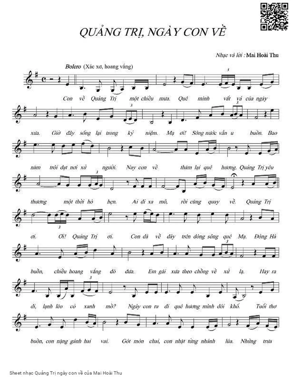 Mai Hoài Thu Con về Quảng Trị một chiều mưa Quê mình lam lũ của ngày xưa [PDF] [Sheet] [Lời H.A] [Mp4/Midi]