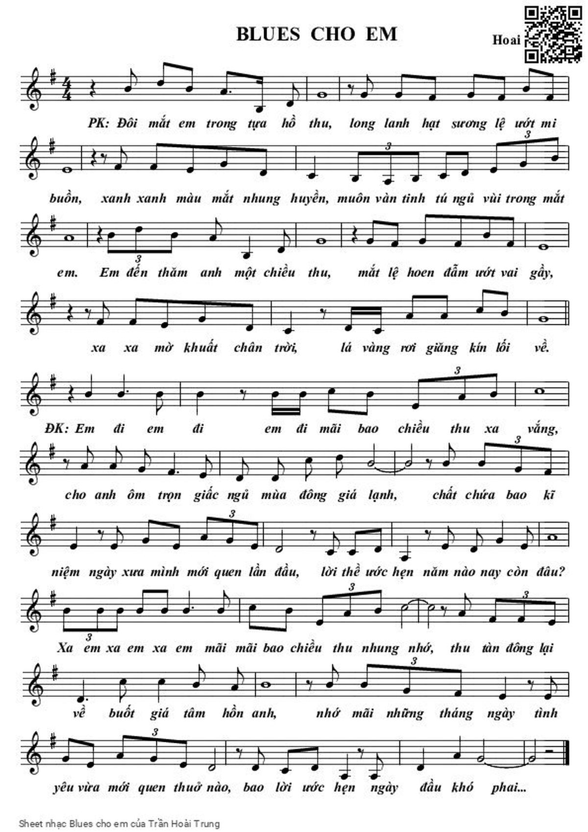 Trần Hoài Trung Đôi mắt em trong tựa hồ thu Long lanh hạt sương lệ ướt mi buồn [PDF] [Sheet] [Lời H.A] [Mp4/Midi]