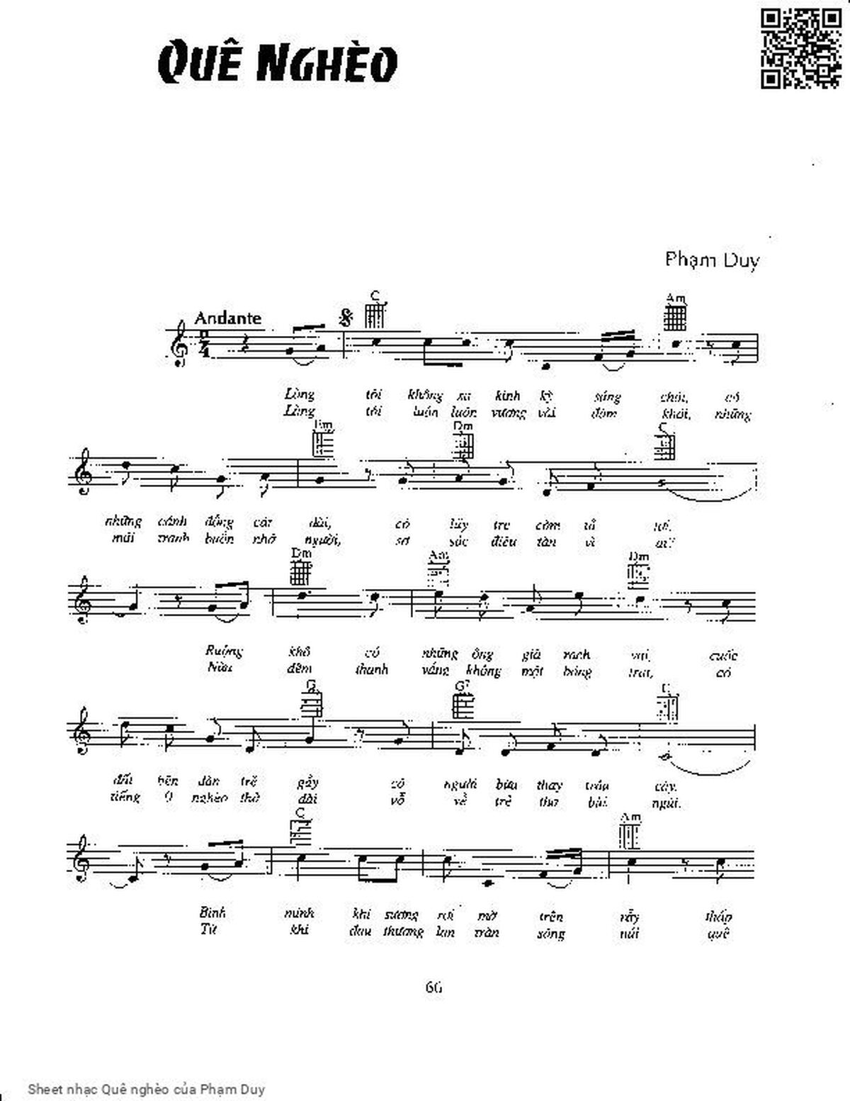 Phần nghe hát Quê nghèo (Phạm Duy) được nhúng từ Youtube, Musescore hoặc link ngoài và chịu sự kiểm soát bản quyền của bên thứ ba đó, vì vậy có thể bị xóa hoặc chèn quảng cáo bất kỳ lúc nào. Nếu bạn không nghe - xem được ca sĩ hát tức là đã bị Youtube hoặc Musescore kiểm soát.