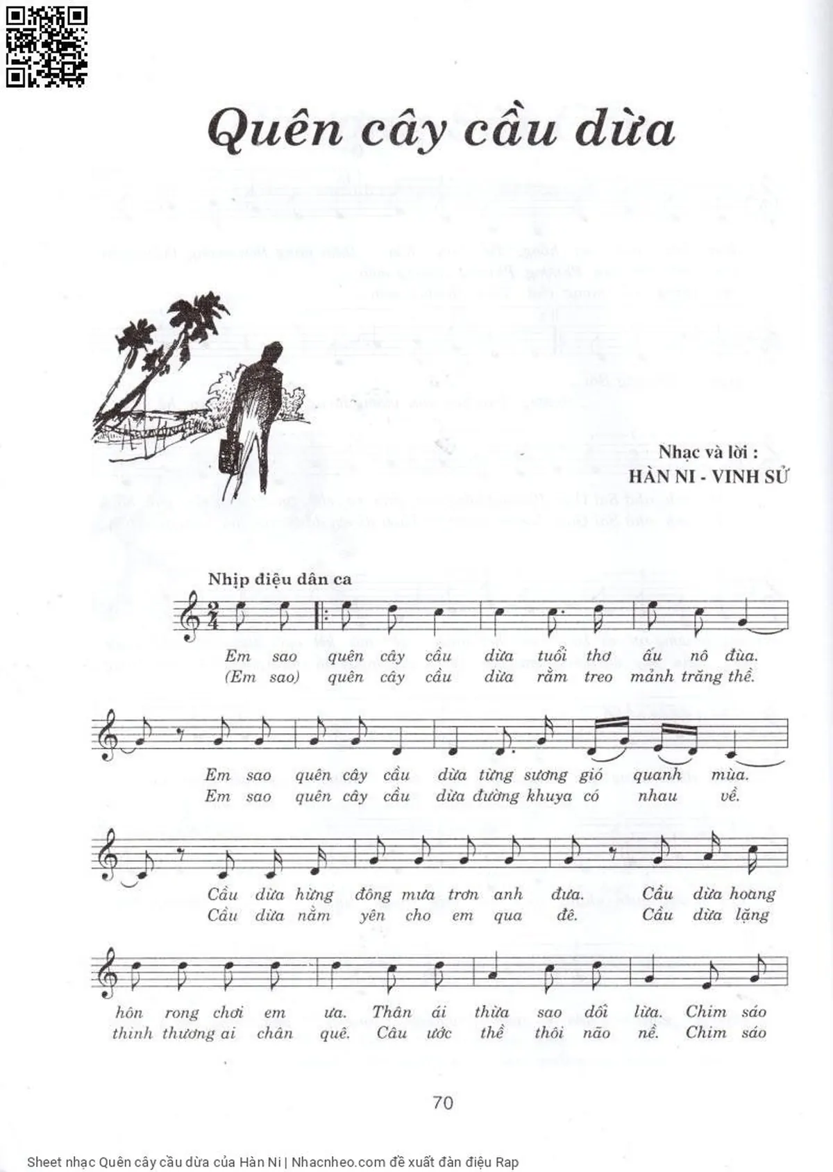 Hàn Ni Em sao quên cây cầu dừa tuổi thơ ấu nô đùa [PDF] [Sheet] [Lời H.A] [Mp4/Midi]