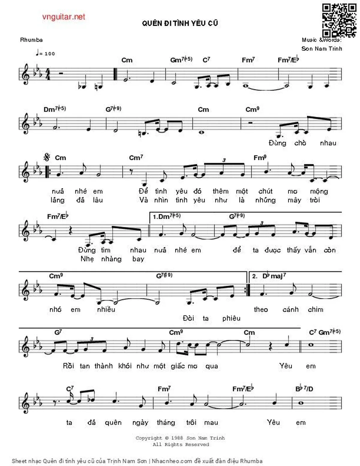 Phần nghe hát Quên đi tình yêu cũ (Trịnh Nam Sơn) được nhúng từ Youtube, Musescore hoặc link ngoài và chịu sự kiểm soát bản quyền của bên thứ ba đó, vì vậy có thể bị xóa hoặc chèn quảng cáo bất kỳ lúc nào. Nếu bạn không nghe - xem được ca sĩ hát tức là đã bị Youtube hoặc Musescore kiểm soát.