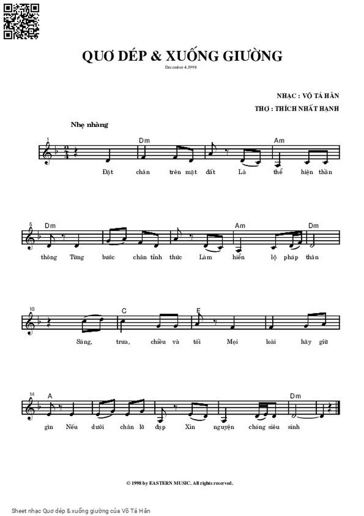Võ Tá Hân Đặt chân trên mặt đất Là thể hiện thần thông [PDF] [Sheet] [Lời H.A] [Mp4/Midi]