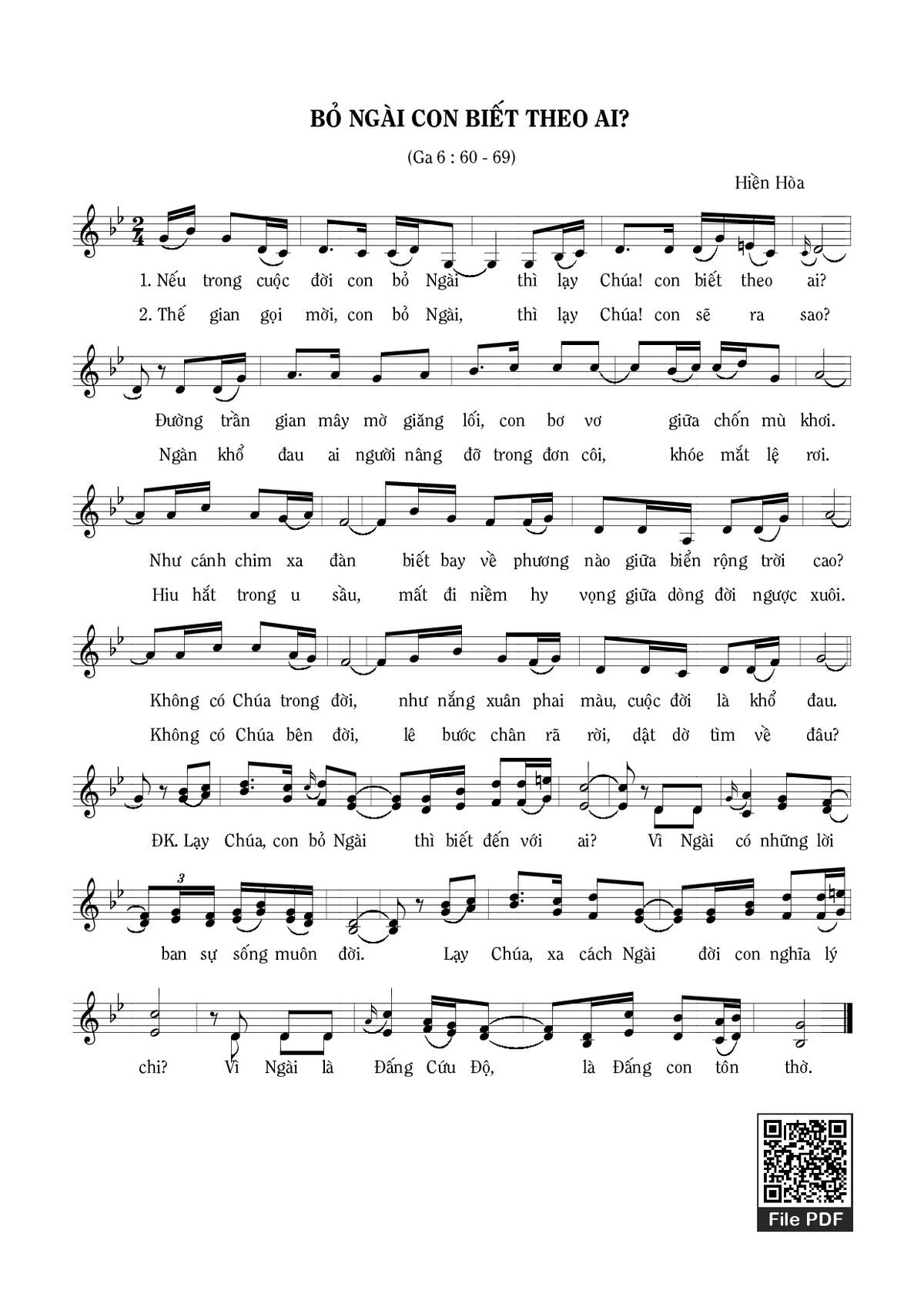 Các sheet PDF tương tự Bỏ Ngài con biết theo ai: