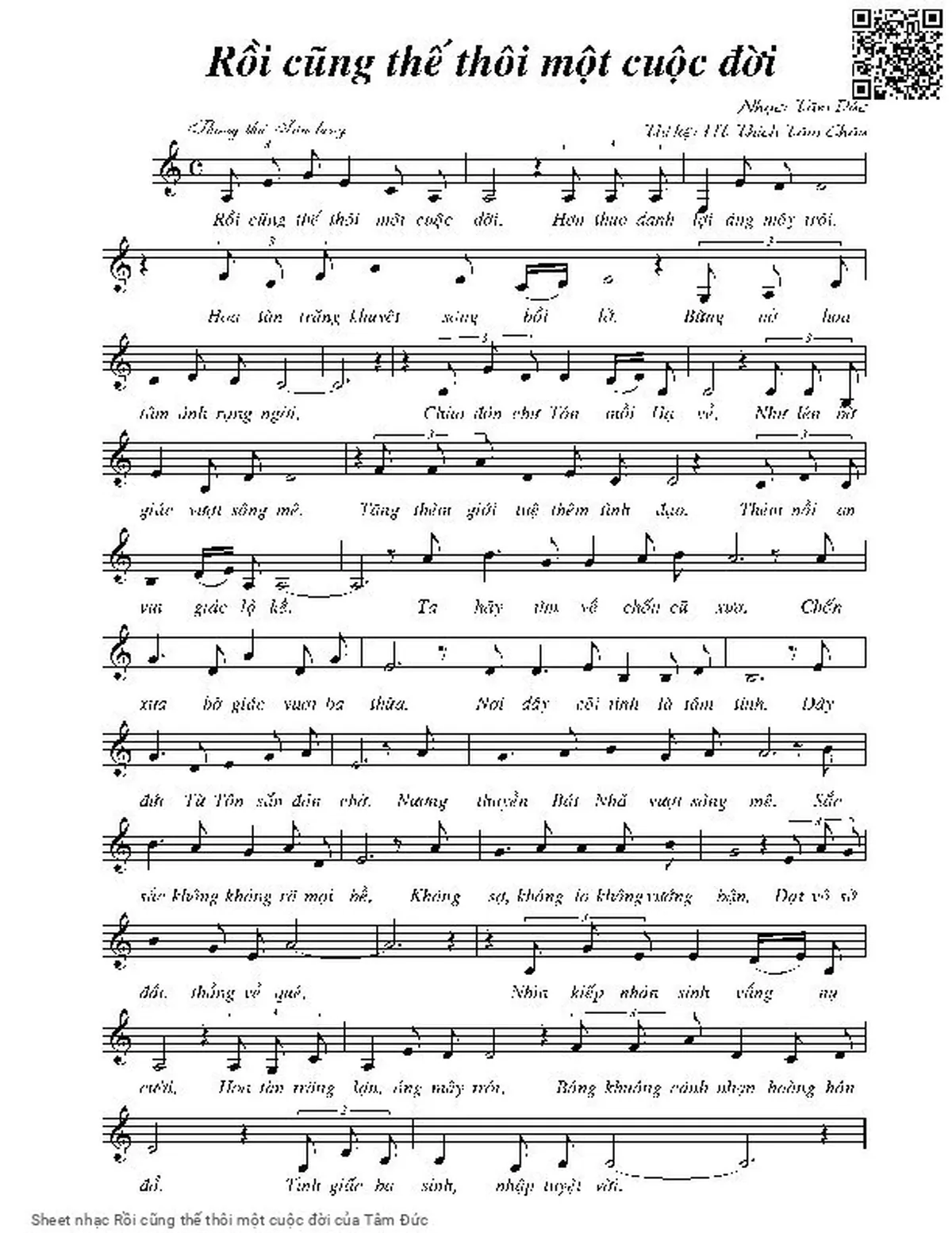 Tâm Đức Rồi cũng thế thôi một cuộc đời [PDF] [Sheet] [Lời H.A] [Mp4/Midi]