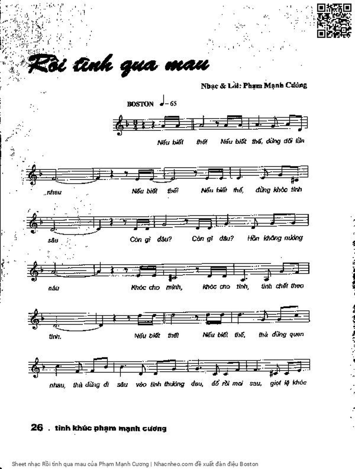 Phạm Mạnh Cương Nếu biết thế nếu biết thế đừng dối lừa nhau [PDF] [Sheet] [Lời H.A] [Mp4/Midi]