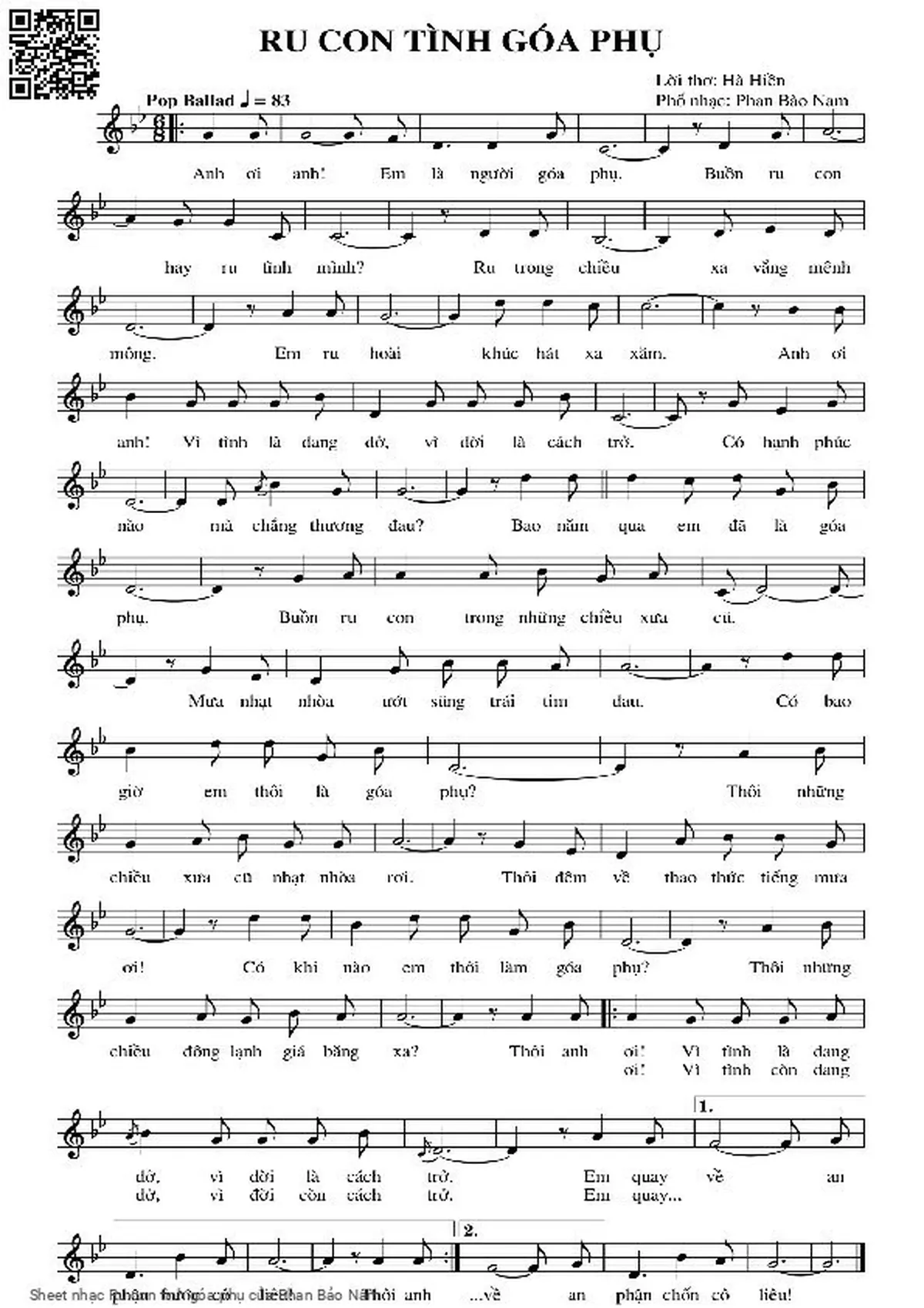 Phan Bảo Nam Anh ơi anh Em là người góa phụ Buồn ru con hay ru tình mình [PDF] [Sheet] [Lời H.A] [Mp4/Midi]
