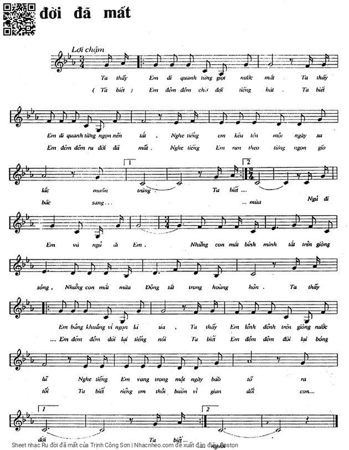 Trịnh Công Sơn Ta thấy em đi quanh từng giọt nước mắt [PDF] [Sheet] [Lời H.A] [Mp4/Midi]