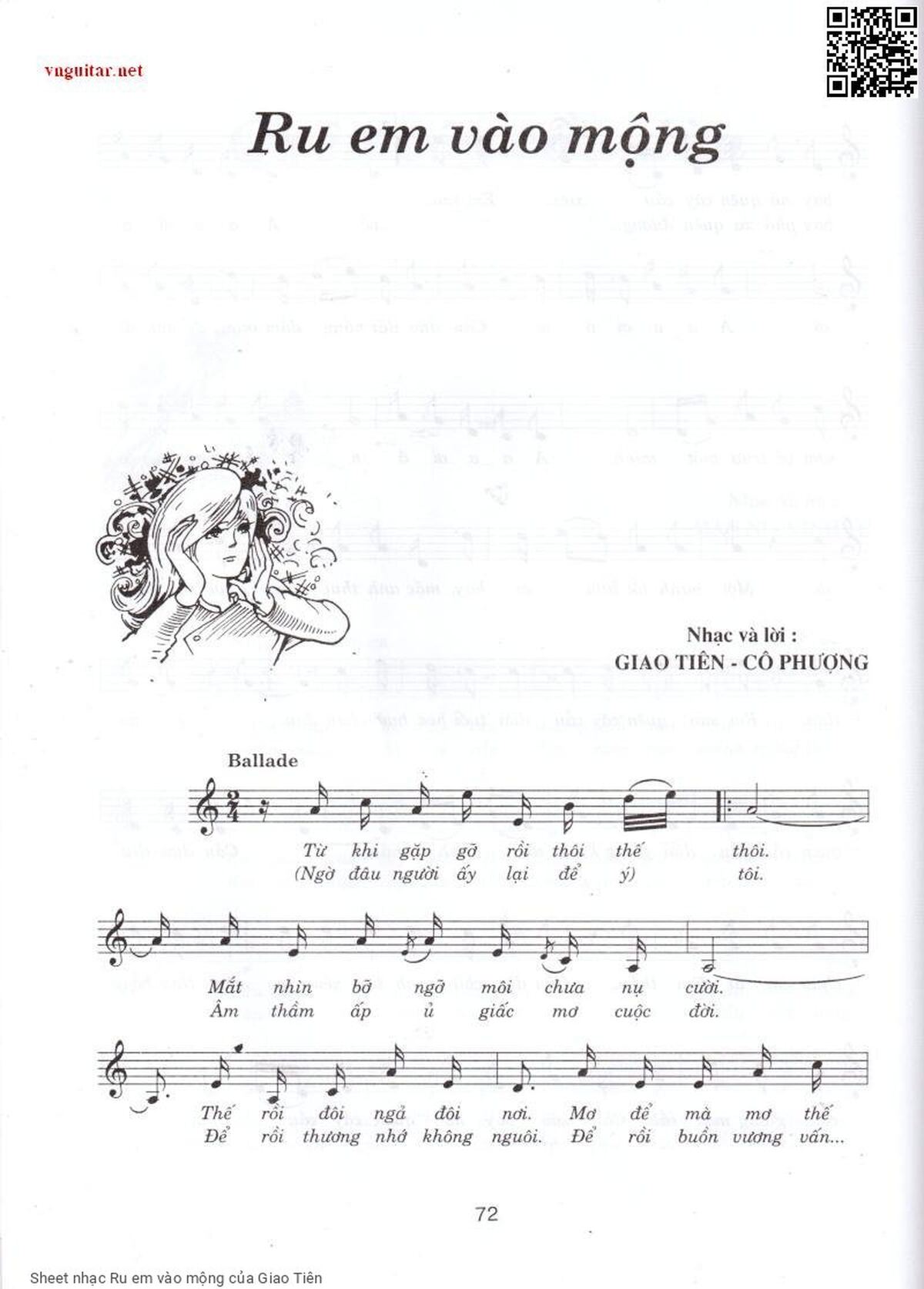 Chọn nút dấu + để tăng tông lên nửa cung, nút dấu - để giảm tông xuống nửa cung. Rê chuột vào hợp âm để xem các thế bấm hợp âm của bài hát Ru em vào mộng.