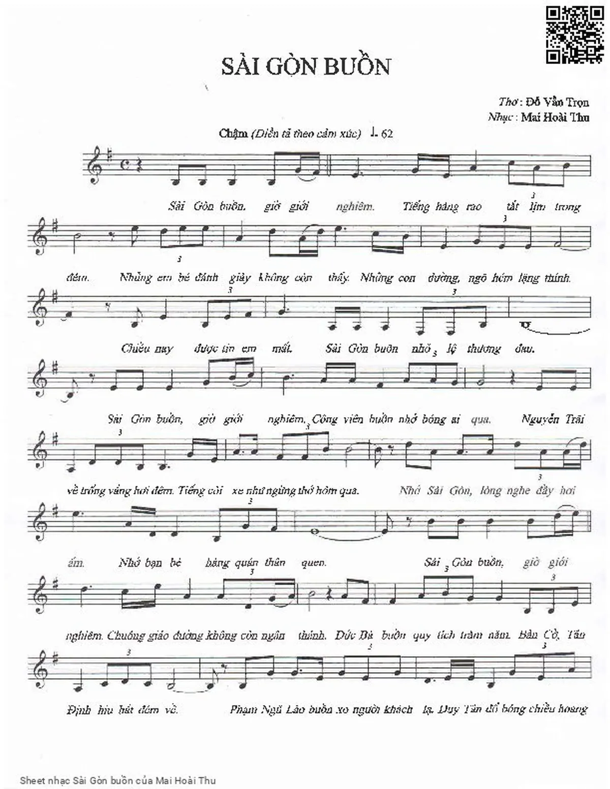 Mai Hoài Thu Sài Gòn buồn giờ giới nghiêm Tiếng hàng rao tắt lịm trong đêm [PDF] [Sheet] [Lời H.A] [Mp4/Midi]