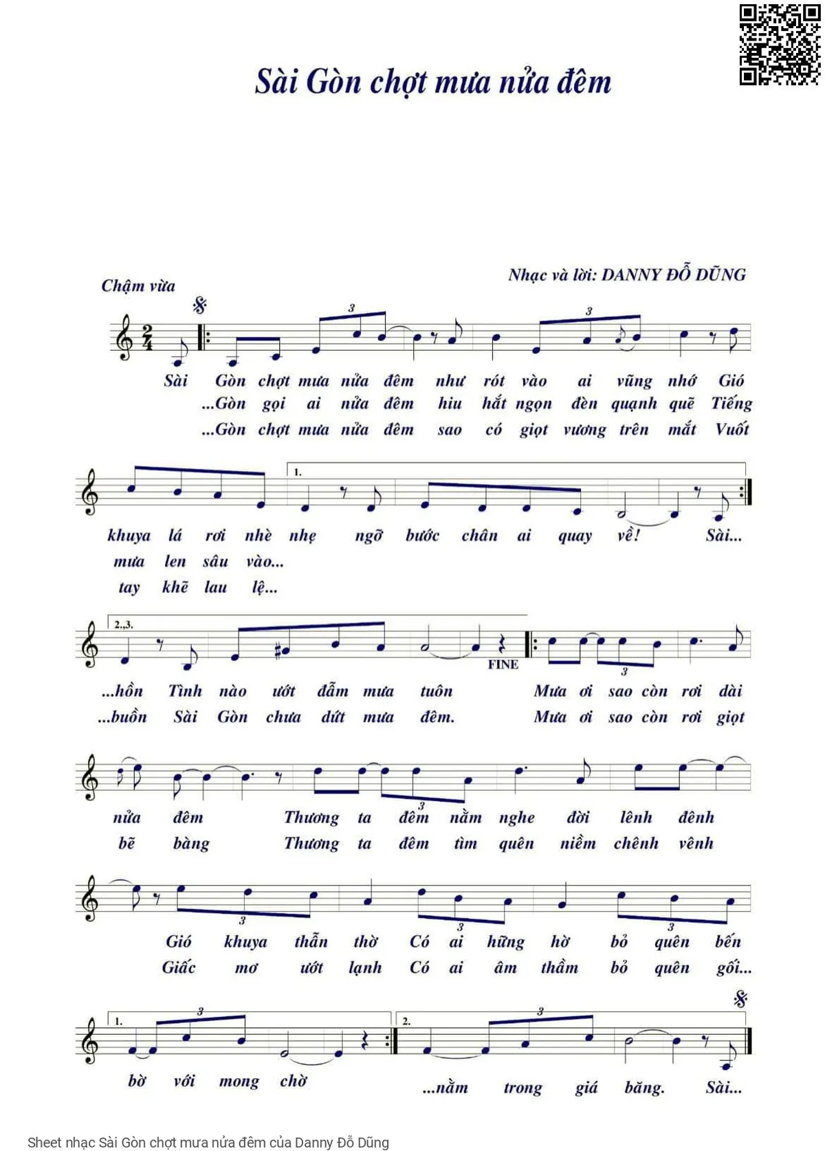 Danny Đỗ Dũng Sài Gòn chợt mưa nửa đêm Như rót vào ai vũng nhớ [PDF] [Sheet] [Lời H.A] [Mp4/Midi]