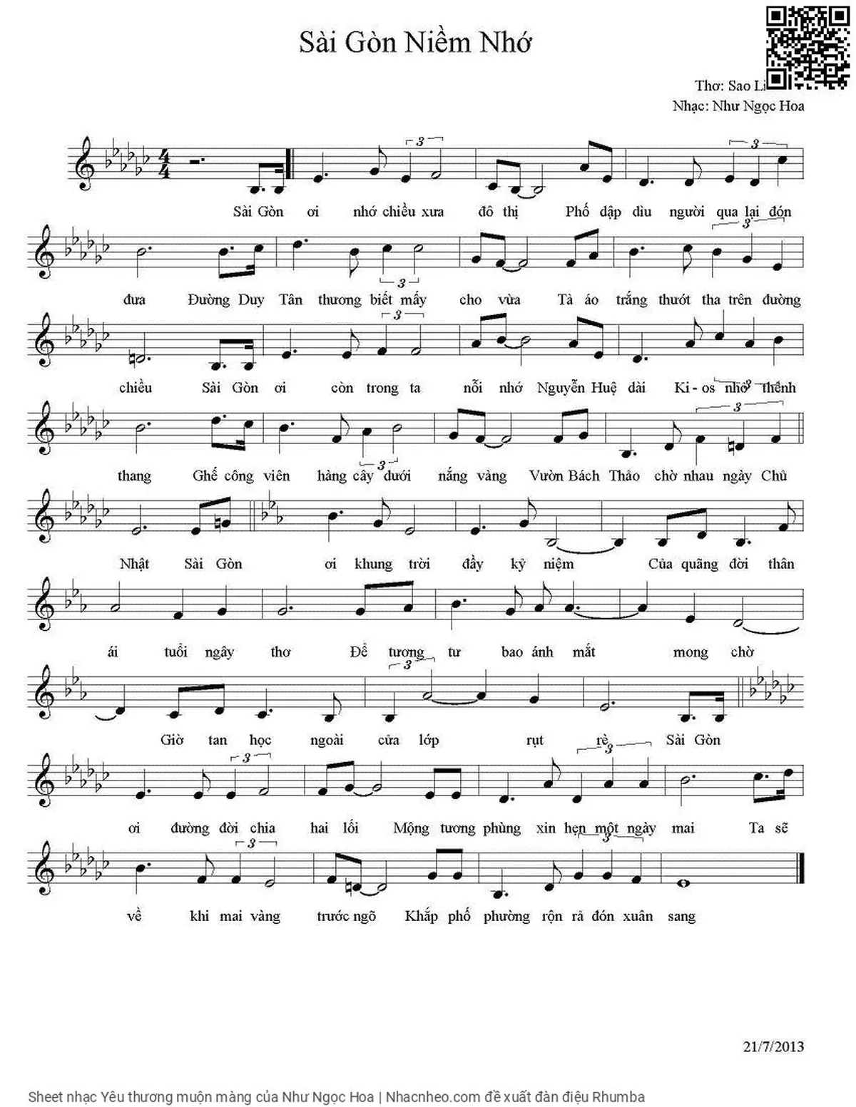 Như Ngọc Hoa Sài Gòn ơi nhớ chiều xưa đô thị Phố dập dìu người qua lại đón đưa [PDF] [Sheet] [Lời H.A] [Mp4/Midi]