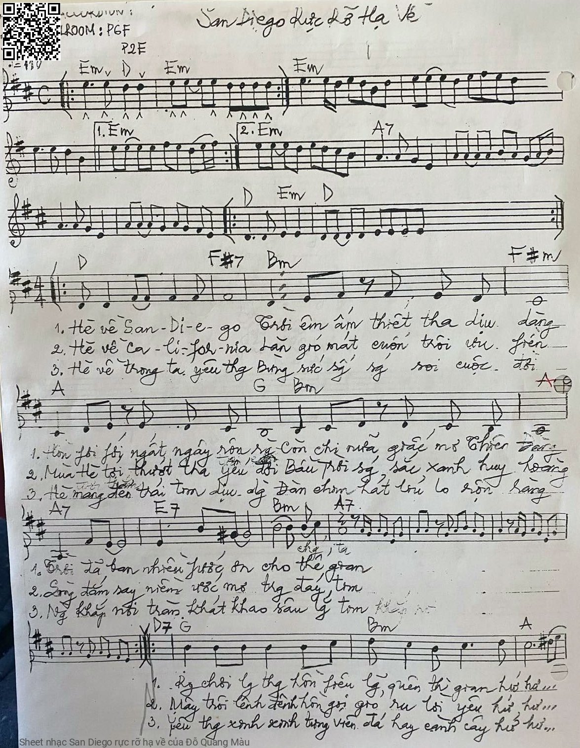 Đỗ Quang Màu Hè về San Di e go Trời êm ấm thiết tha dịu dàng [PDF] [Sheet] [Lời H.A] [Mp4/Midi]