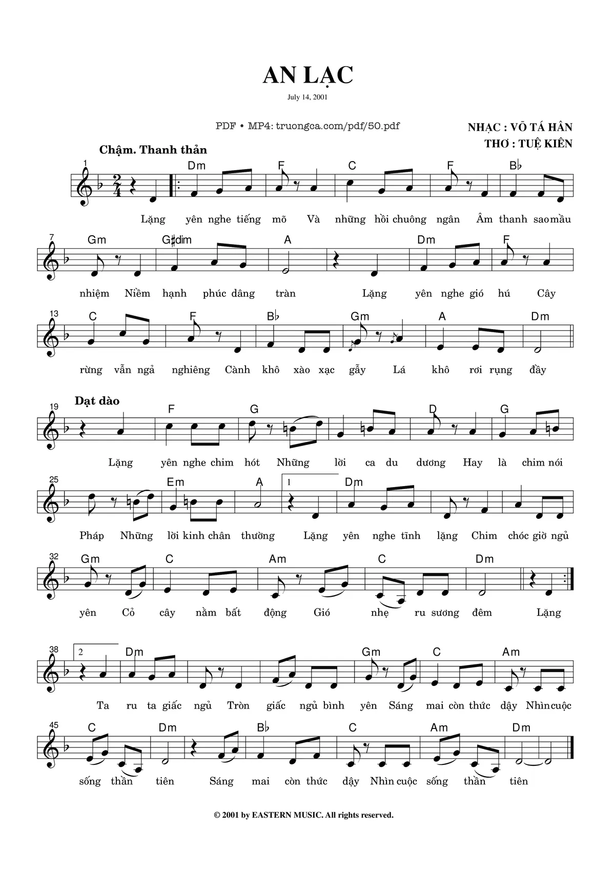 Võ Tá Hân Lặng yên nghe tiếng mõ Và những hồi chuông ngân [PDF] [Sheet] [Lời H.A] [Mp4/Midi]