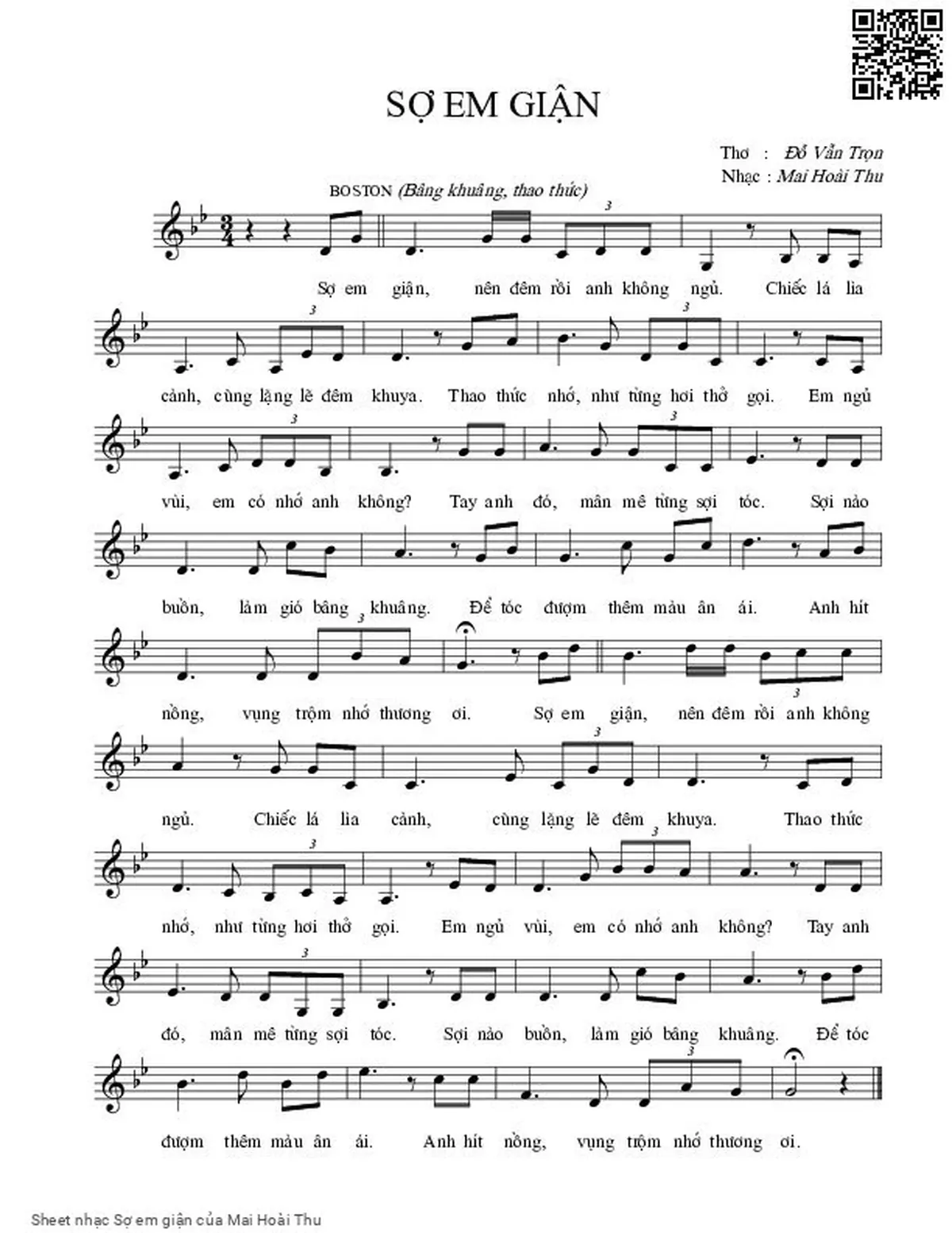 Mai Hoài Thu Sợ em giận nên đêm rồi anh không ngủ Chiếc lá lìa cành cũng lặng lẽ đêm khuya [PDF] [Sheet] [Lời H.A] [Mp4/Midi]