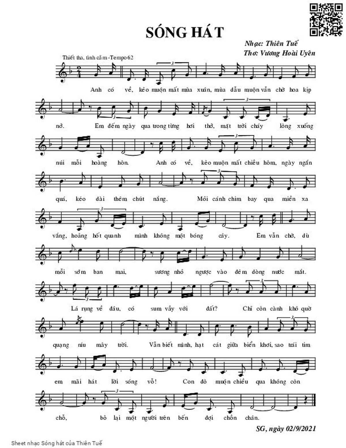 Phần nghe hát Sóng hát (Thiên Tuế) được nhúng từ Youtube, Musescore hoặc link ngoài và chịu sự kiểm soát bản quyền của bên thứ ba đó, vì vậy có thể bị xóa hoặc chèn quảng cáo bất kỳ lúc nào. Nếu bạn không nghe - xem được ca sĩ hát tức là đã bị Youtube hoặc Musescore kiểm soát.